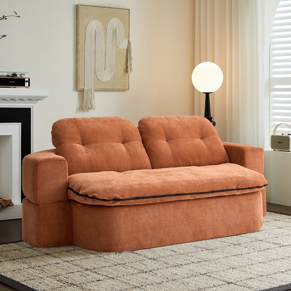 75" Plush Chenille Foldable 3-Seater Sofa Bed with Storage