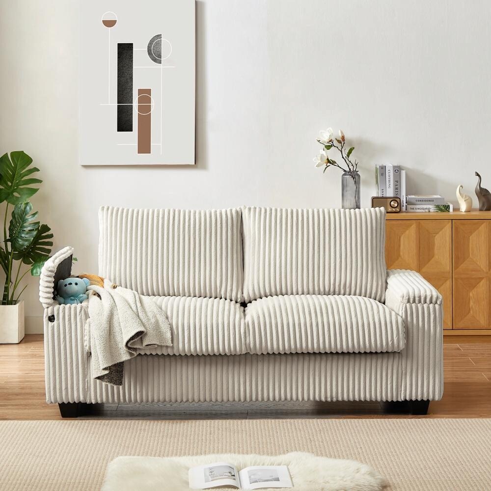 71" Sofa with Plush Corduroy, Square Storage Armrest and USB Port