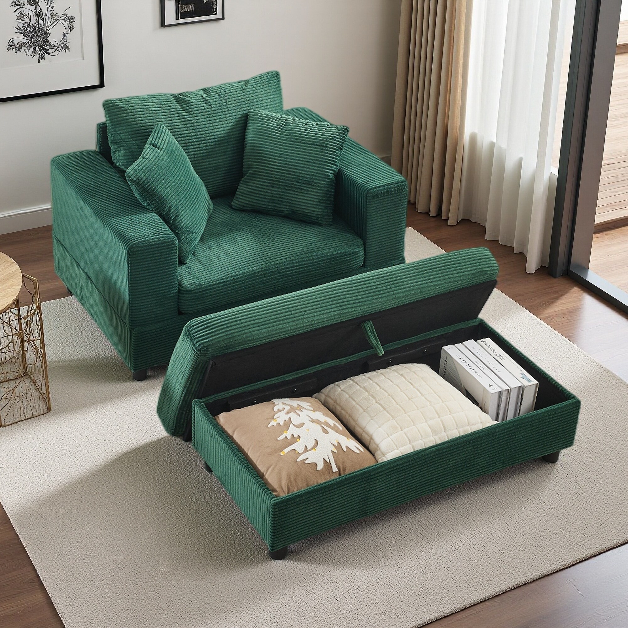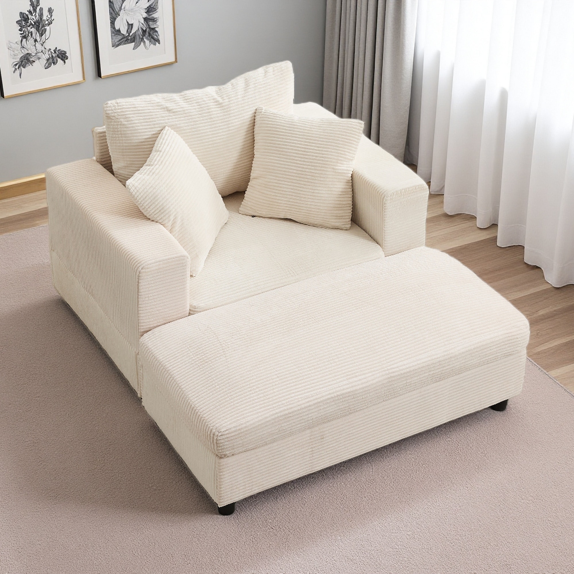 54.13" Corduroy Chaise Lounge Chair Sofa, Removable Ottoman, 2 Lumbar Pillows