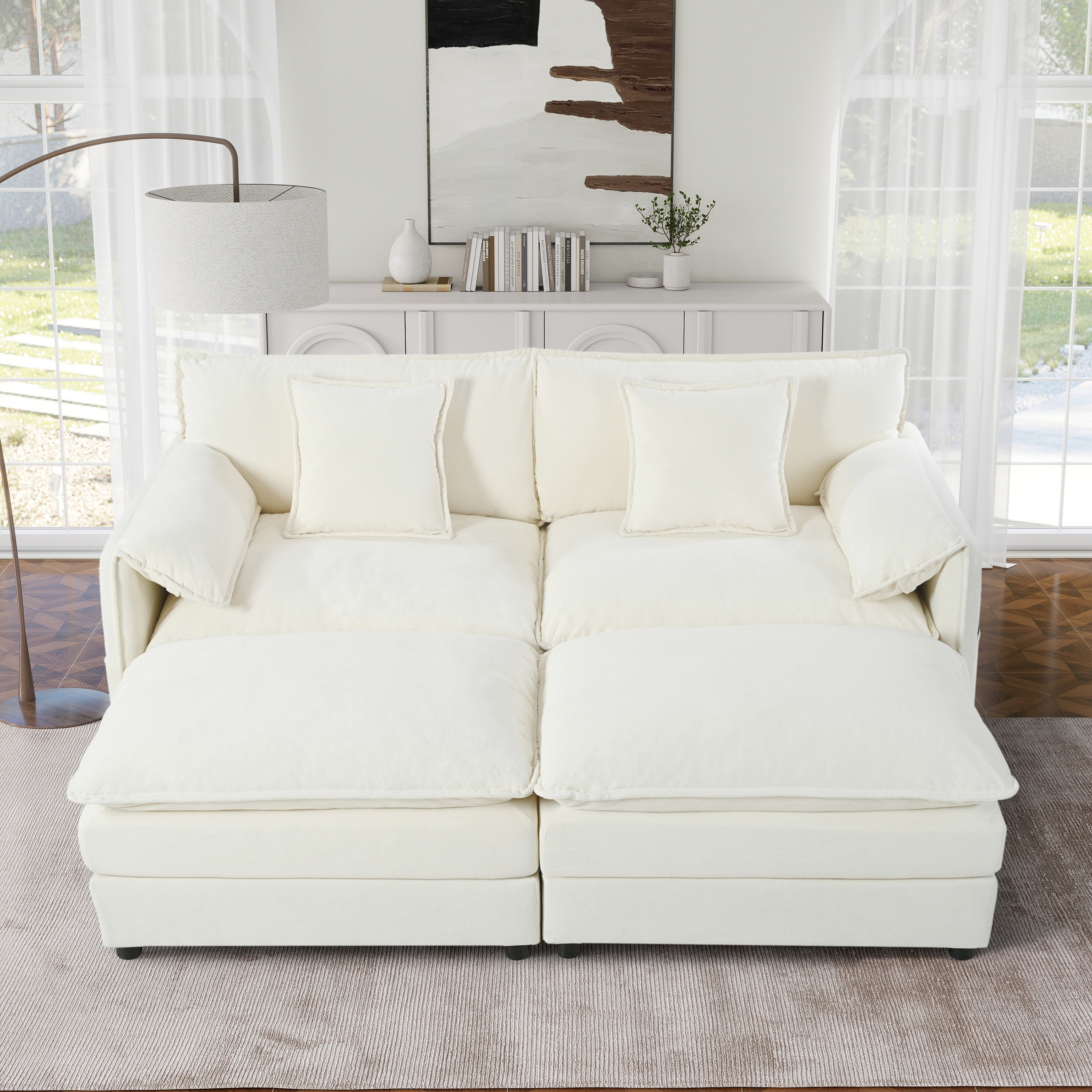 Modular Sofa DIY Combination Sofa for Living Room, Chenille Sectional Sofa Deep Seat Couch Set with Ottoman