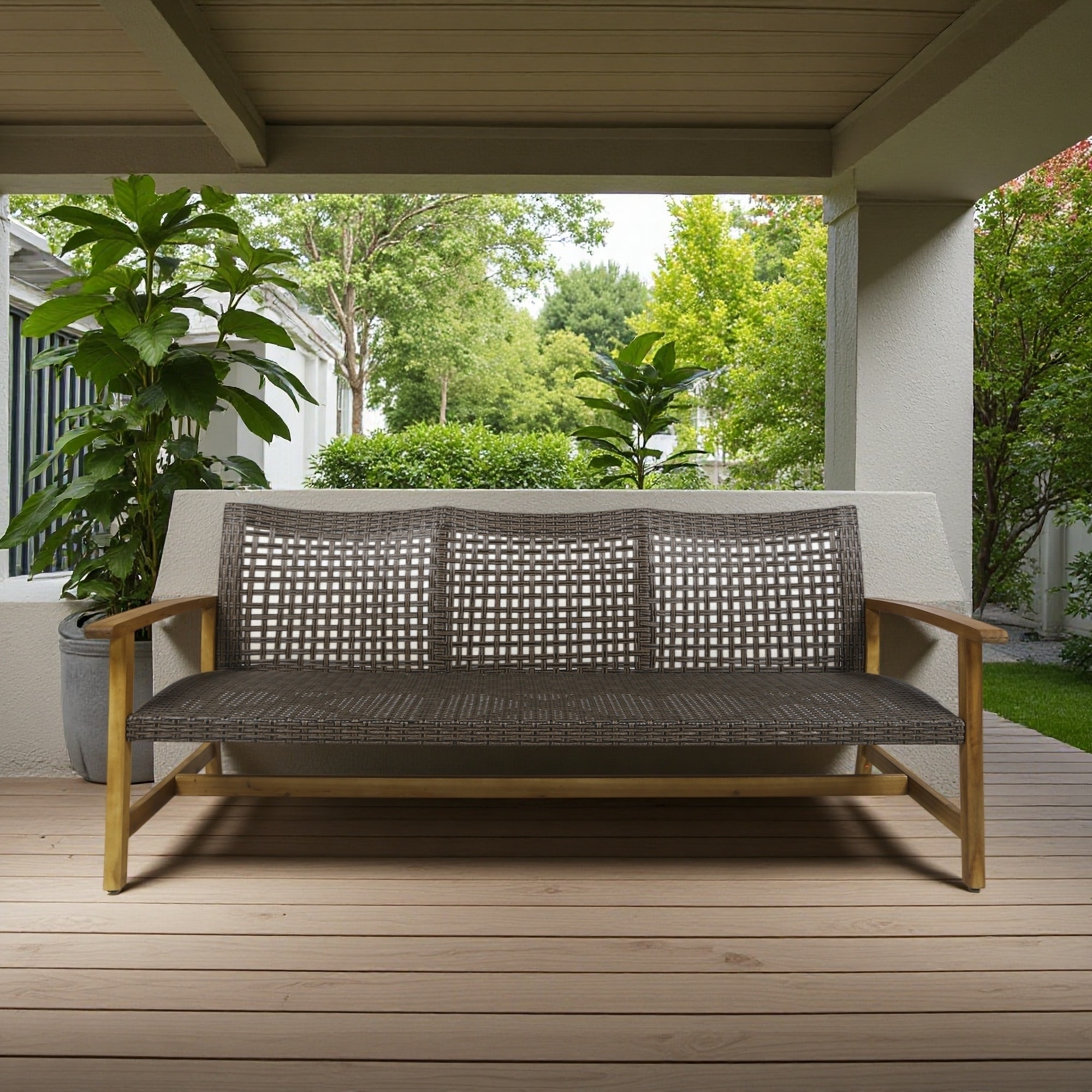 3-Seater Outdoor Sofa with Wicker Seating for Patio, Backyard