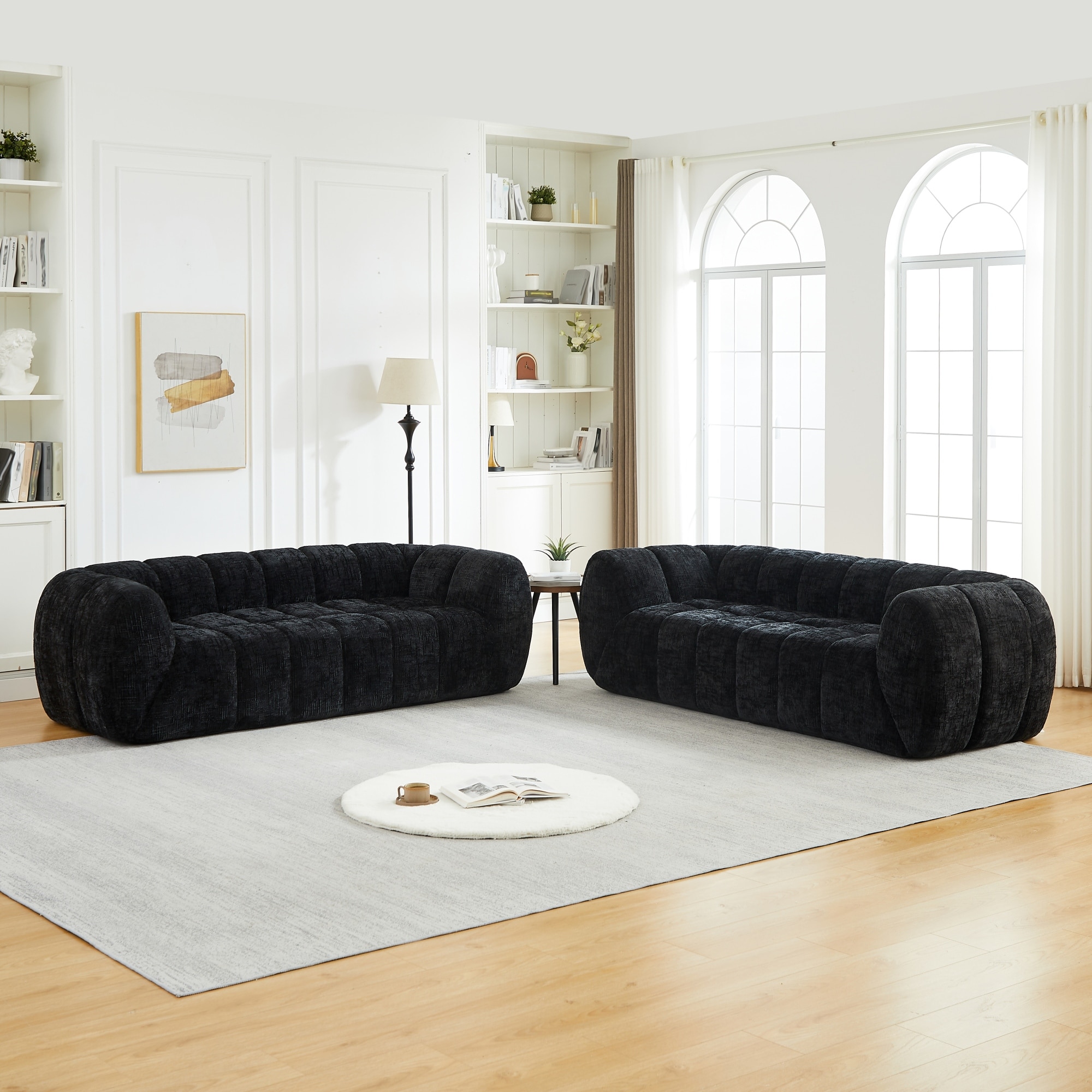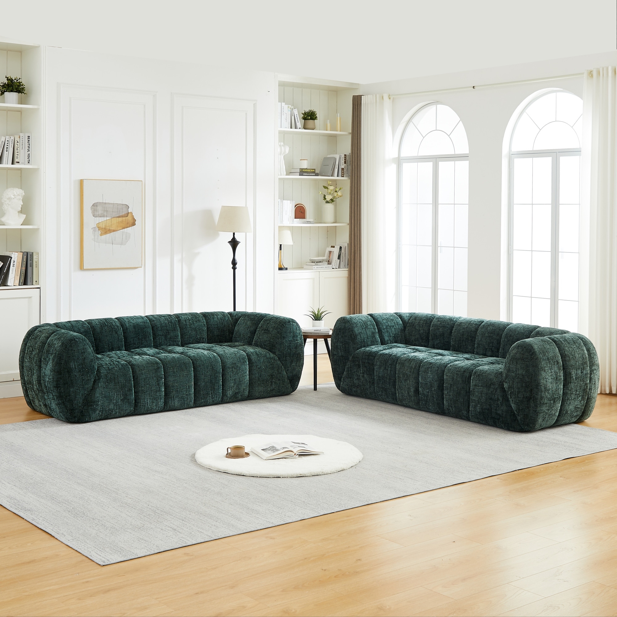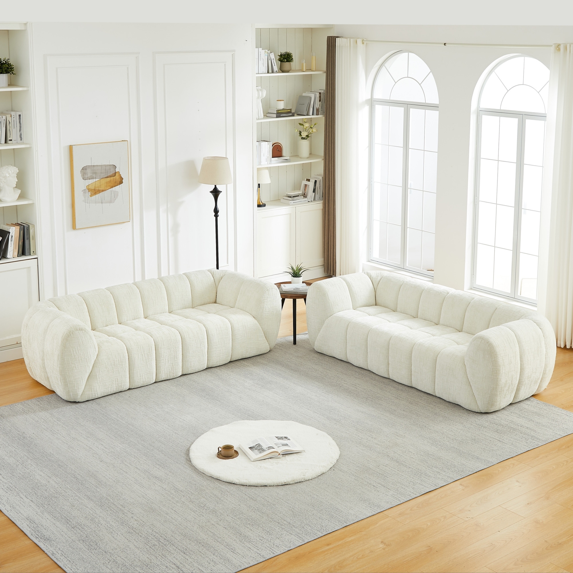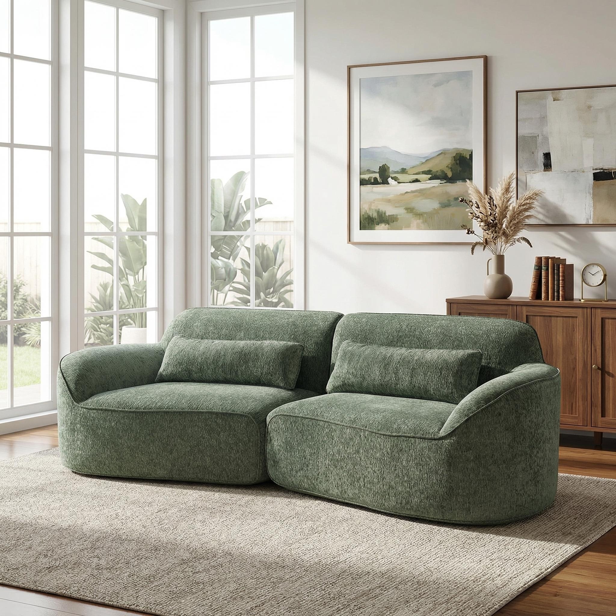 Roomfitters 2-Piece Chenille Foam Sofa Set, Modern Low Profile Modular Sectional Couch for Large Living Room