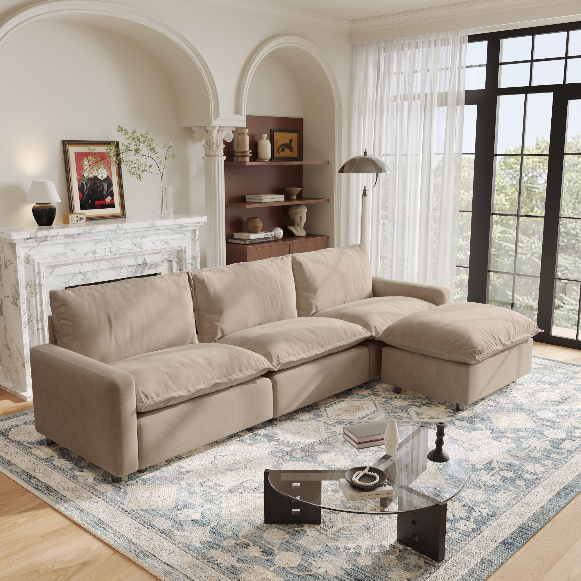 116'' L Shaped Sectional Modular Cloud Sofa with Ottoman,Soft Pillow Back Tool-free Easy Assembly Linen Couch