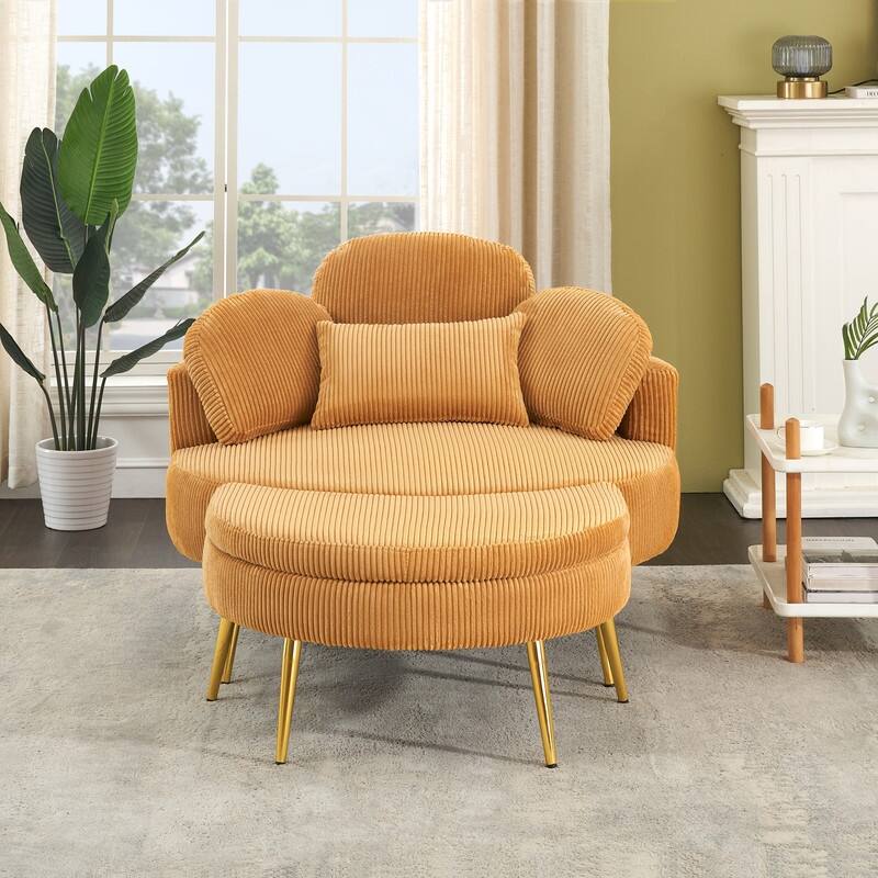 Modern Floor Sofa with 2 Pillows,Convertible Plush Corduroy Foam-Filled Sleeper Sofa Bed