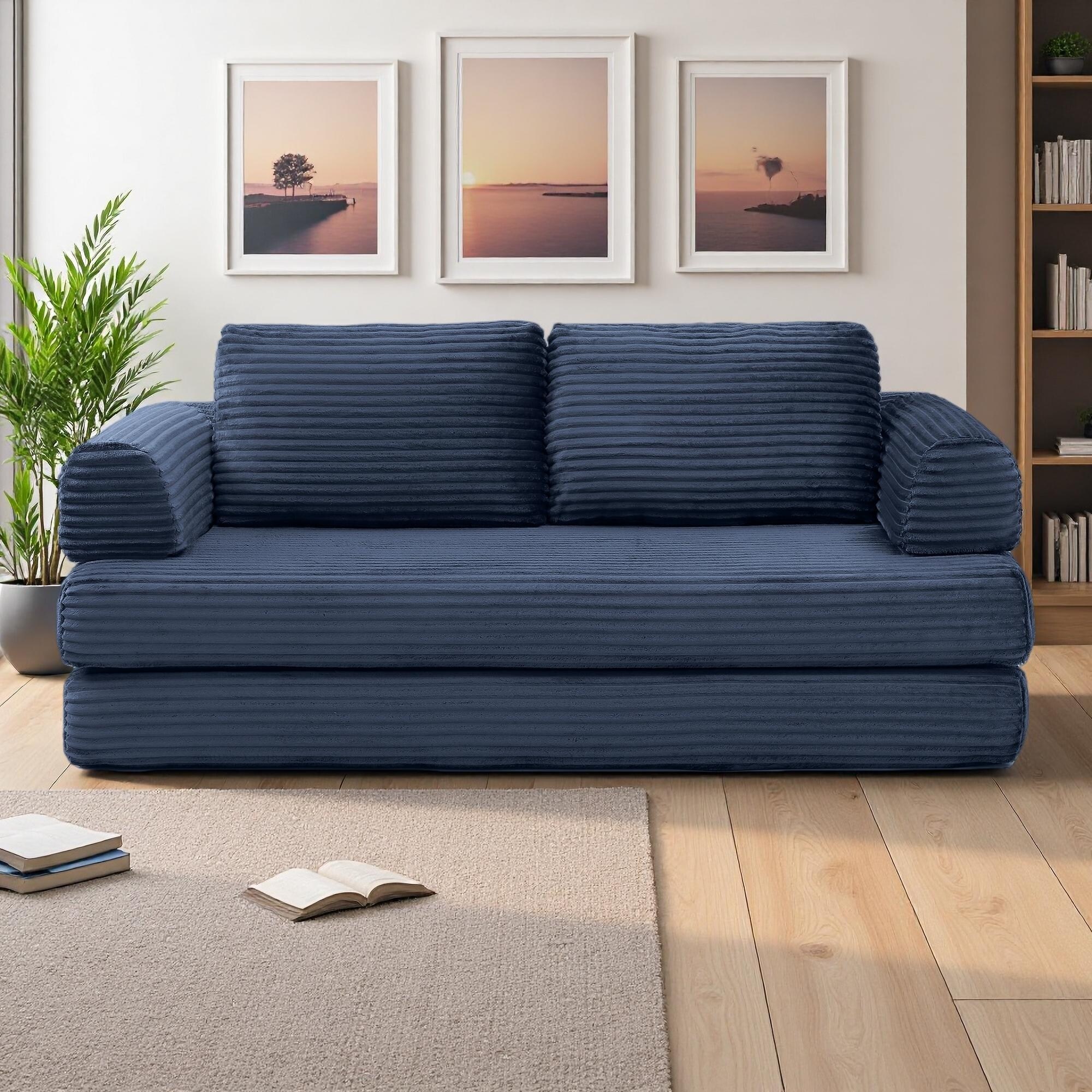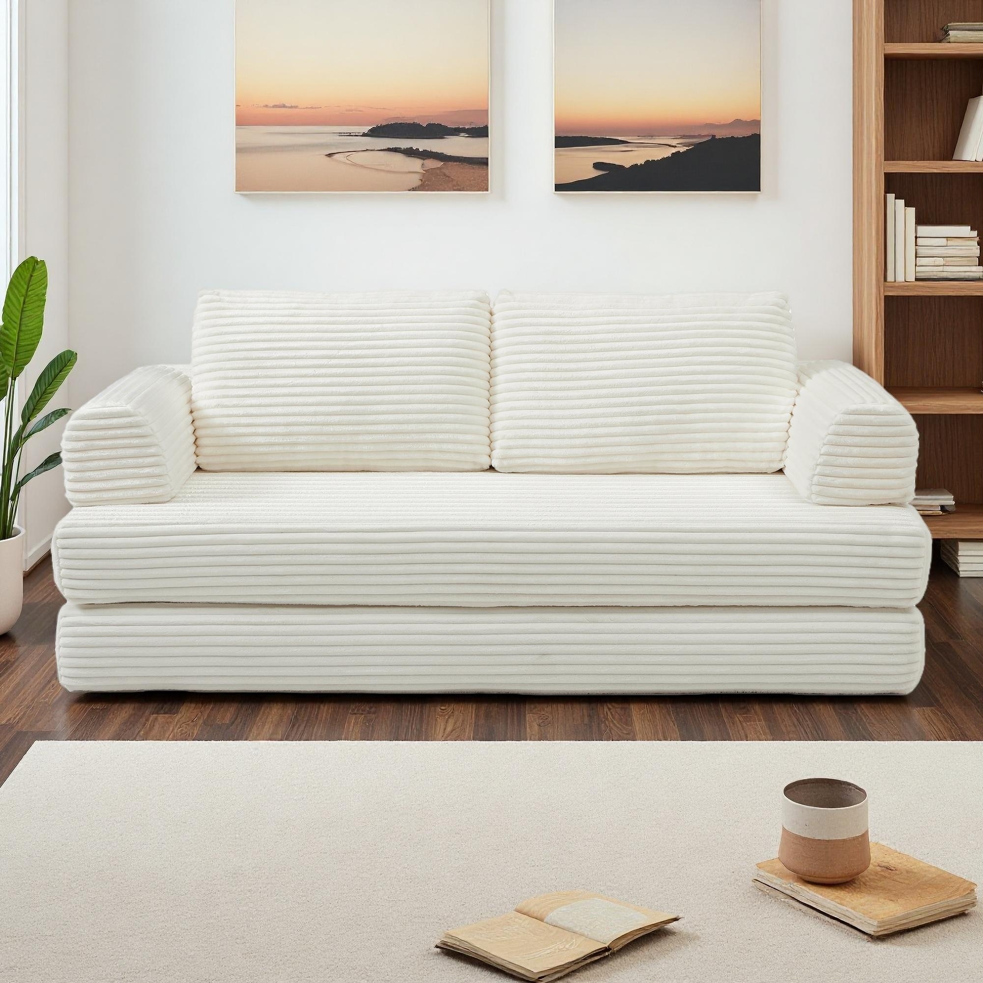 79.5'' Corduroy Folding Sofa Bed with Pillows and No Assembly Required (3-Seater)