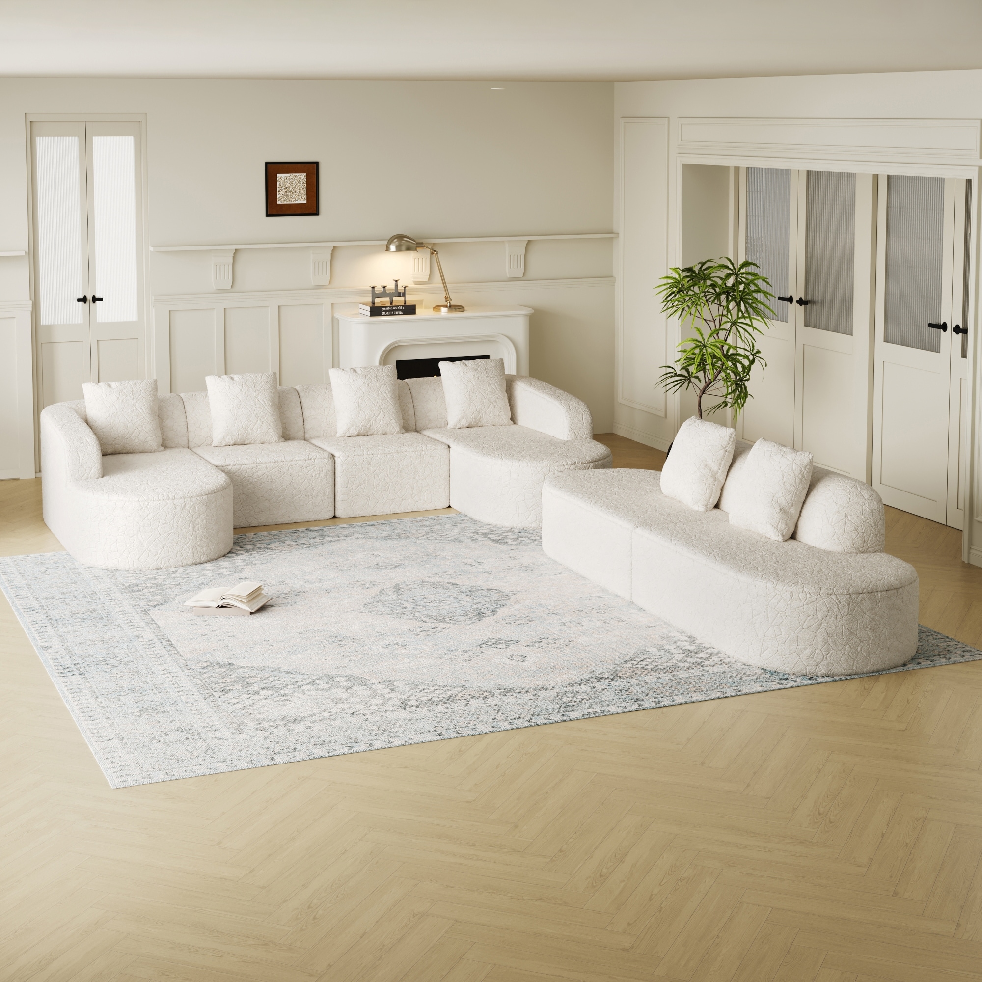 Roomfitters Large Curved Sectional Sofa, Semicircle Modular Fabric Couch with 5 Accent Pillows for Luxury Living Room