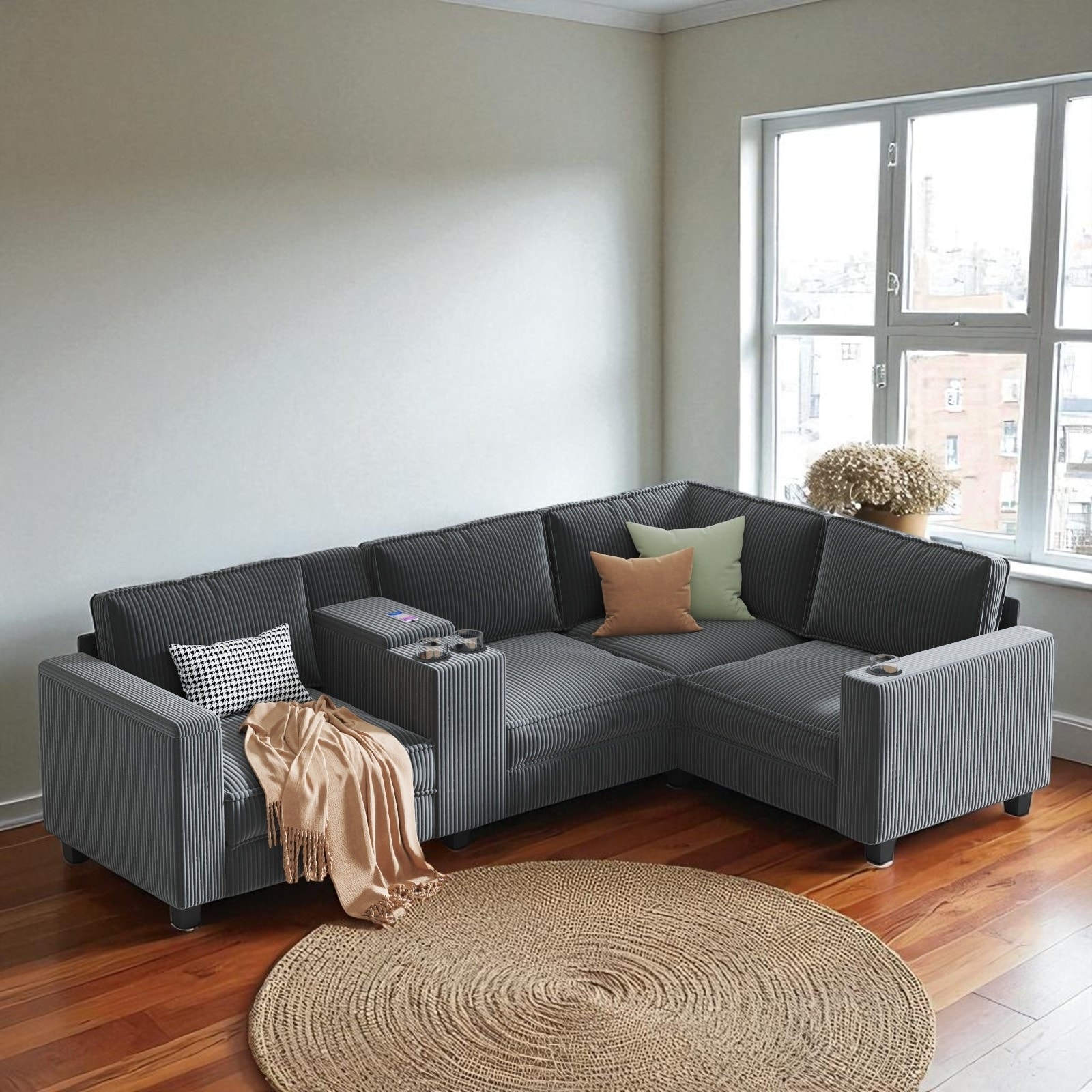 105.5" L-Shaped Sectional Sofa with Center Console, Storage, USB Port, Cup Holders, 4-Seater Couch - Iron