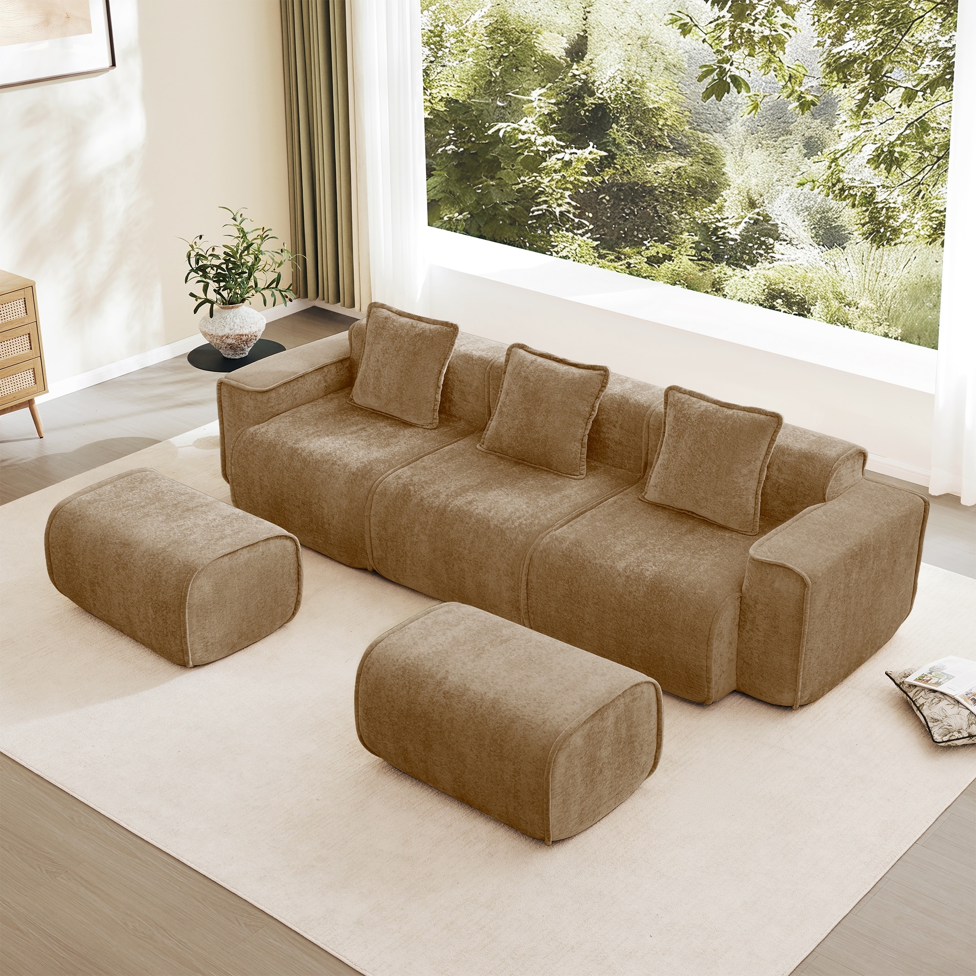 105" Chenille L-Shaped Modular Sectional Sofa with Ottoman and Pocket Spring Cushion (3-Seater)