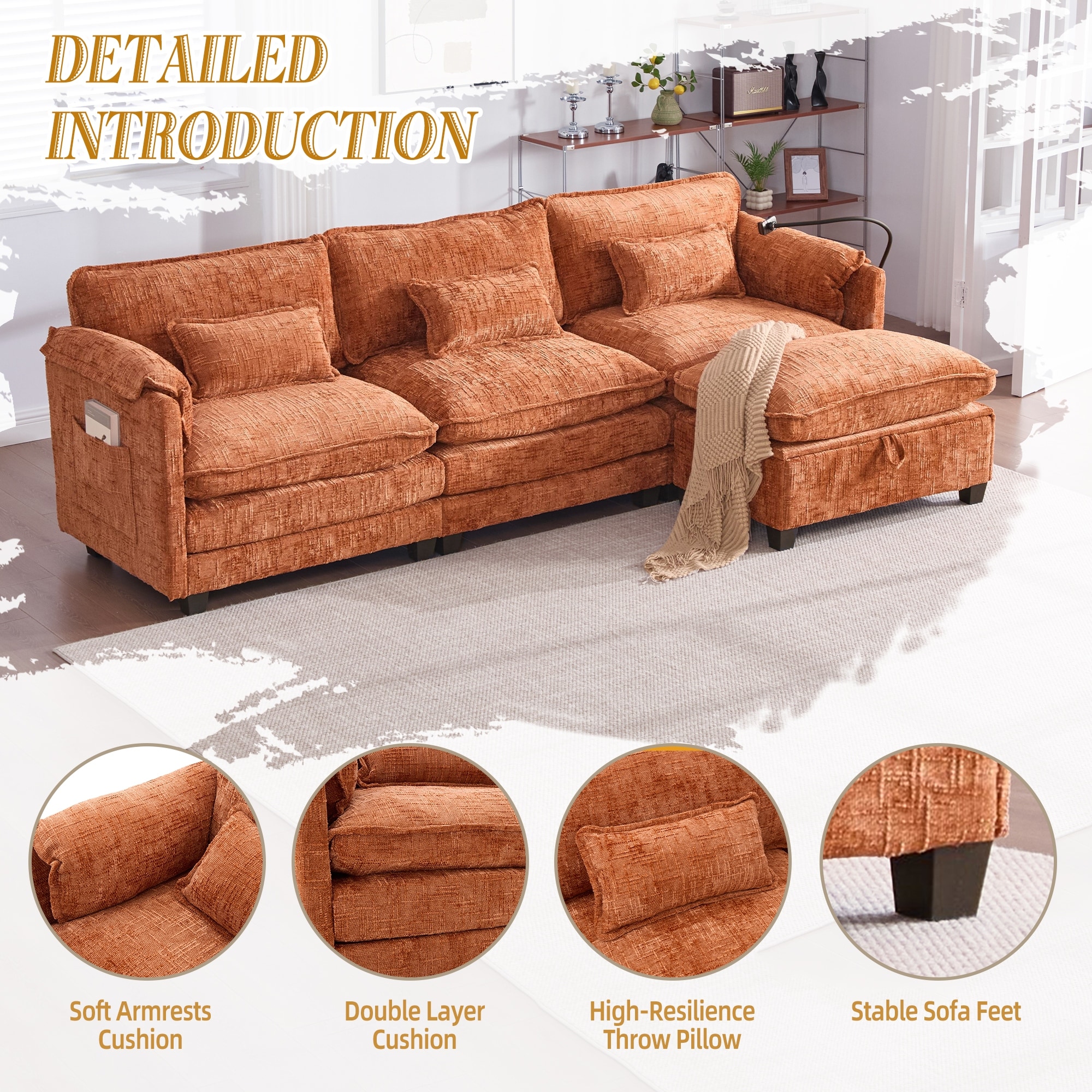 L Shaped Modular Sectional Sofa Deep Seat w/ Storage Ottoman, Phone Holder, USB Port
