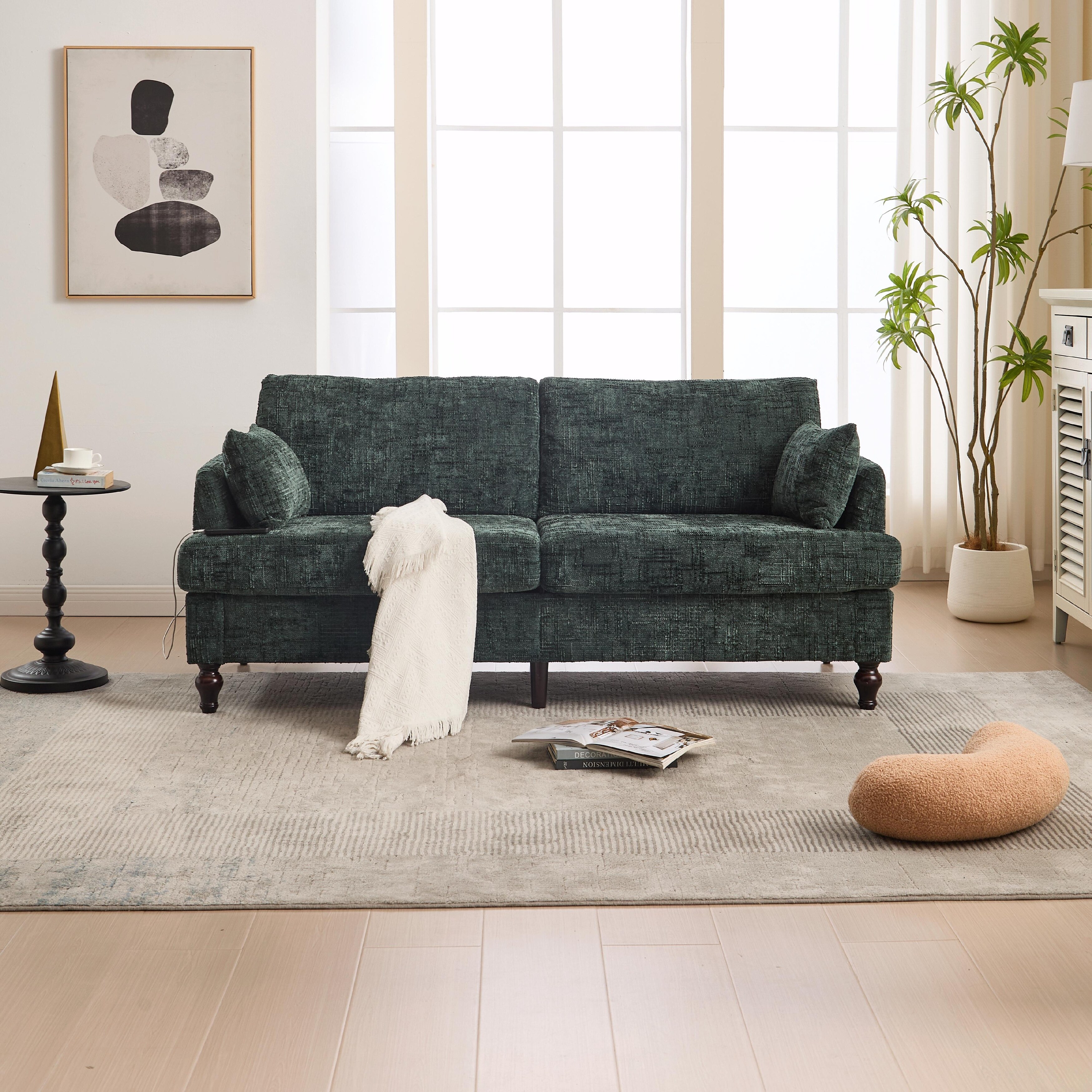 Modern Chenille 2-Seater Sofa with Wood Legs, LED Light, USB Charging Port, and Storage Bag