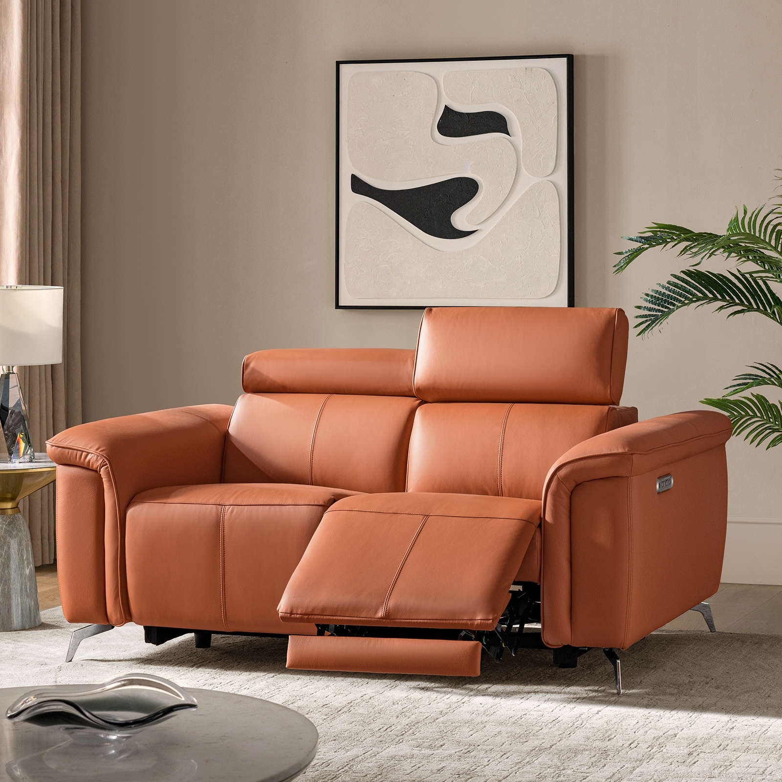 Gaitano Modern 67.25"W Genuine Leather Power Reclining Loveseat Sofa with Adjustable Headrest and USB Port By HULALA HOME