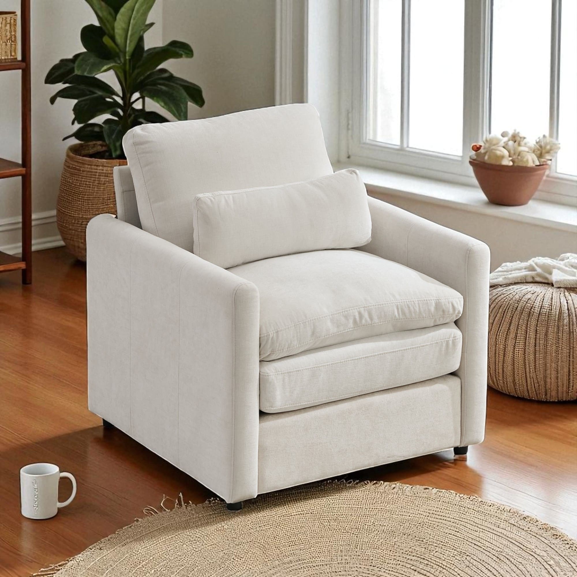 Chenille Fabric Armchair with Double-Layer Cushion, Lumbar Pillow, Deep Seat and Curved Armrests