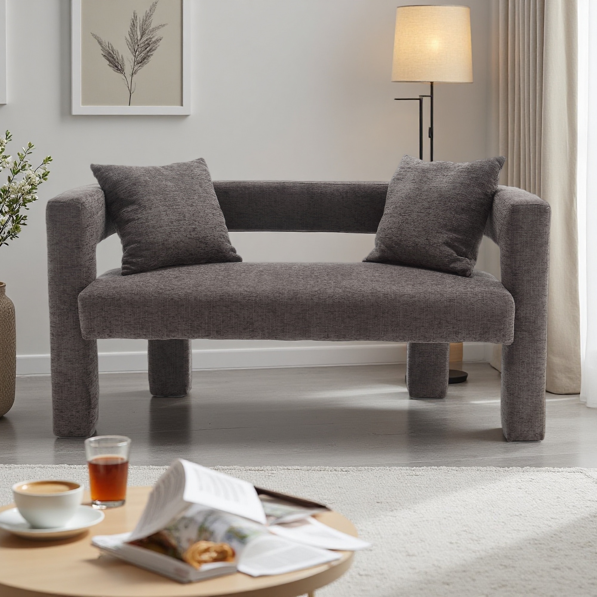 51" Chenille Fabric Loveseat Sofa with Arc Backrest Design, High-Density Foam Cushions, 2 Original Pillows, Small Accent Couch