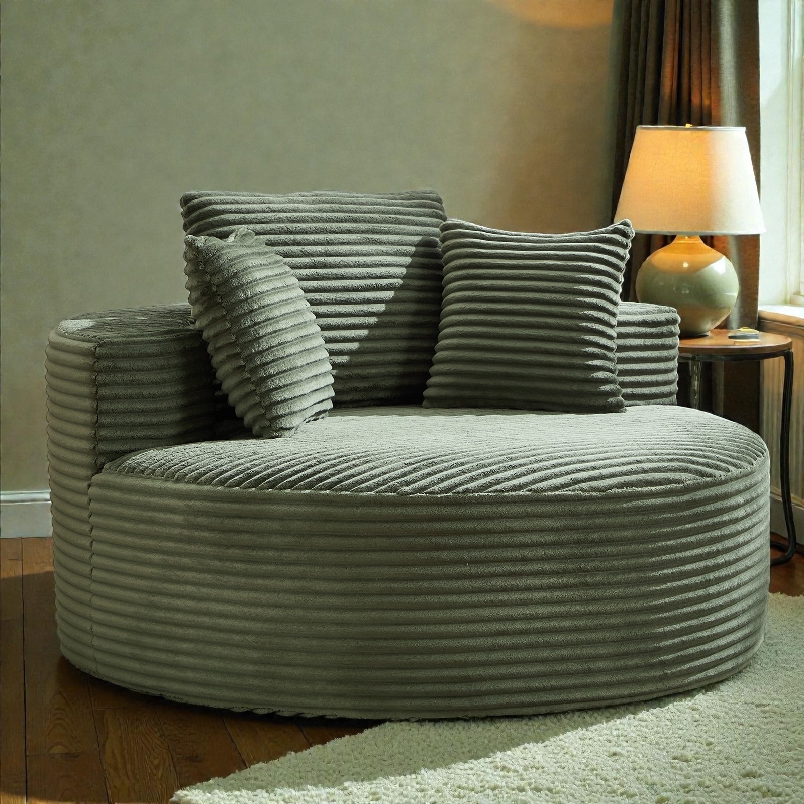 Round Sofa Bed with Memory Foam, Convertible Cloud Couch with Three Pillows, Comfortable Floor Sofa for Living Room