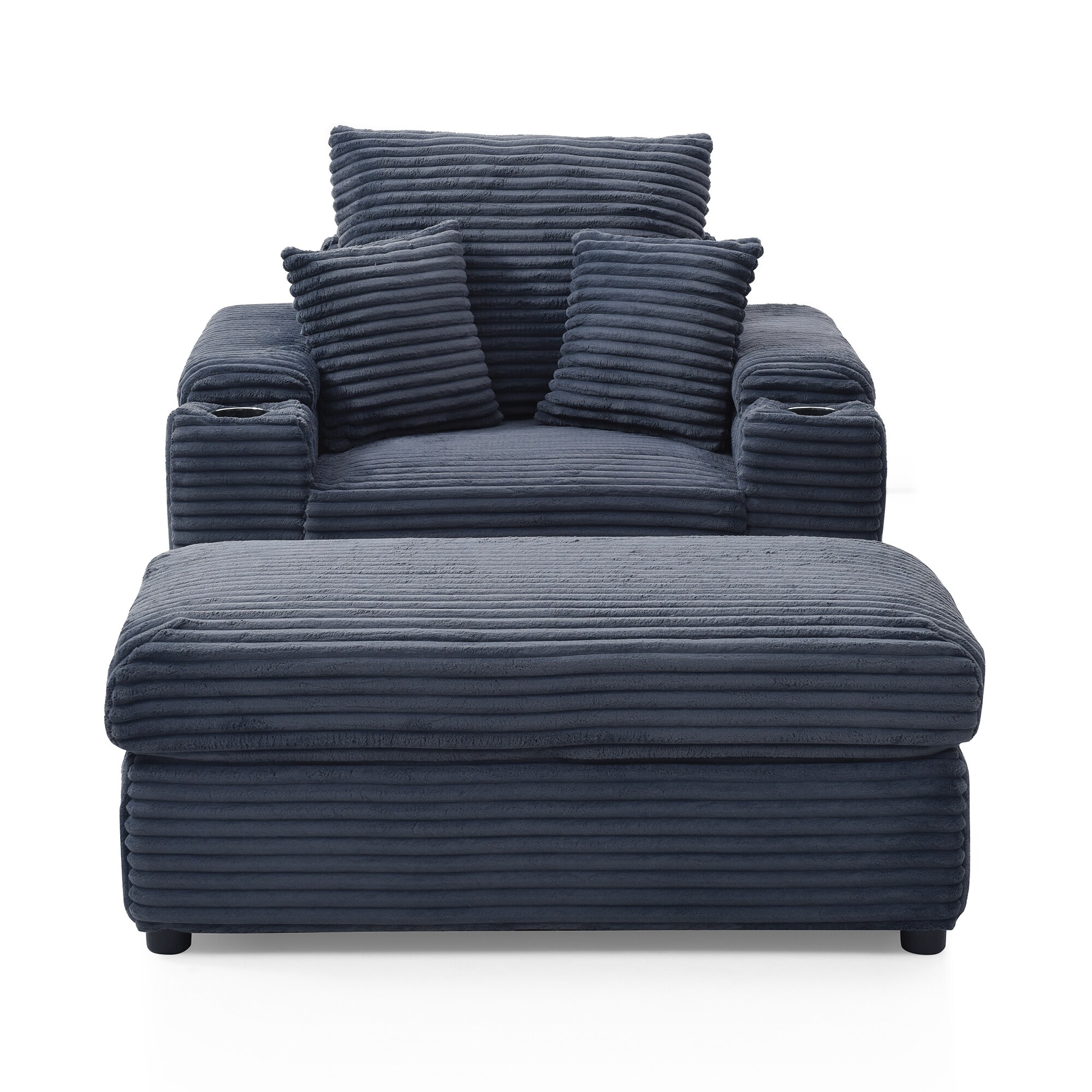 Oversized Single Sofa Chair with Storage Ottoman, Extra Wide Accent Chair Upholstered Reading Chair with 2 Cup Holder