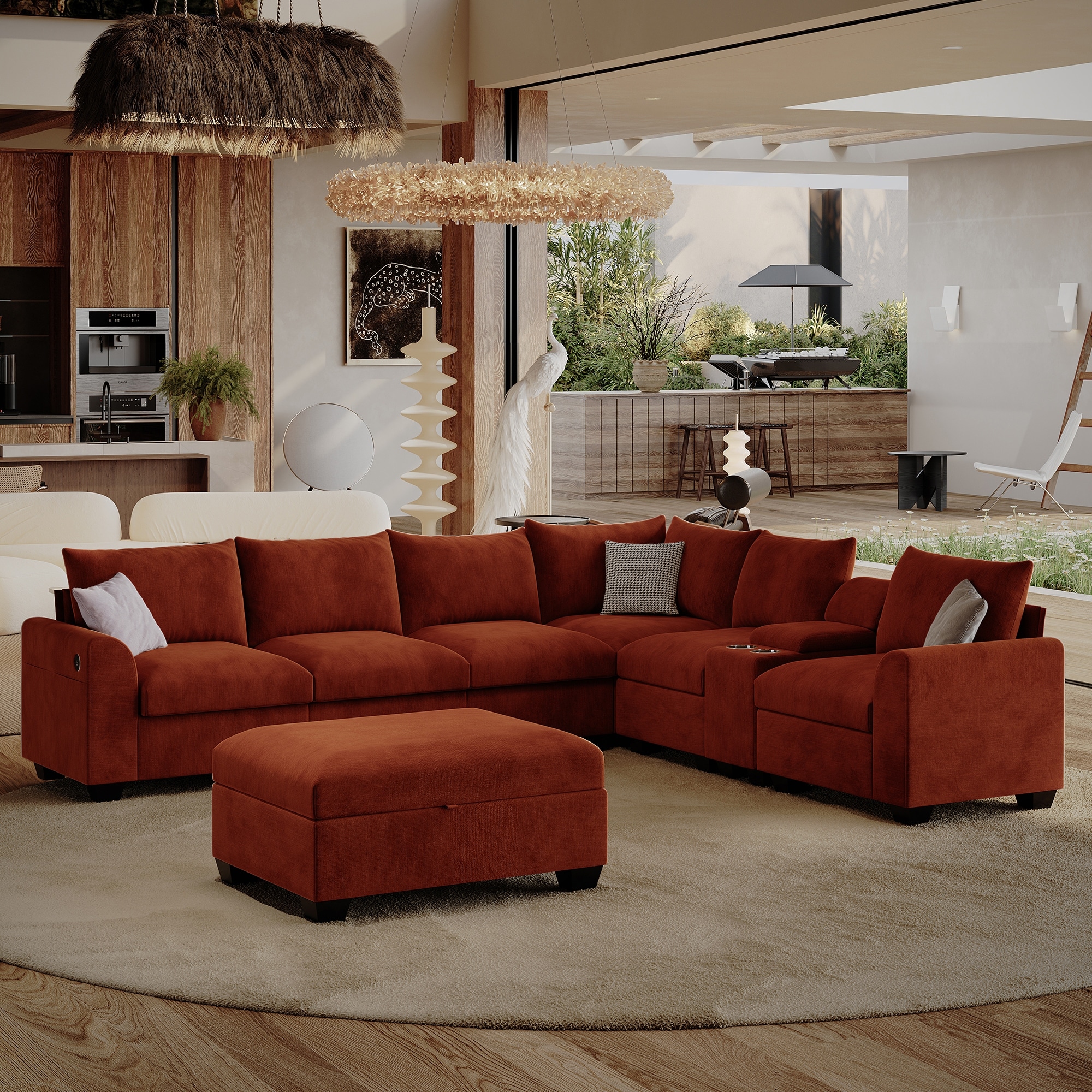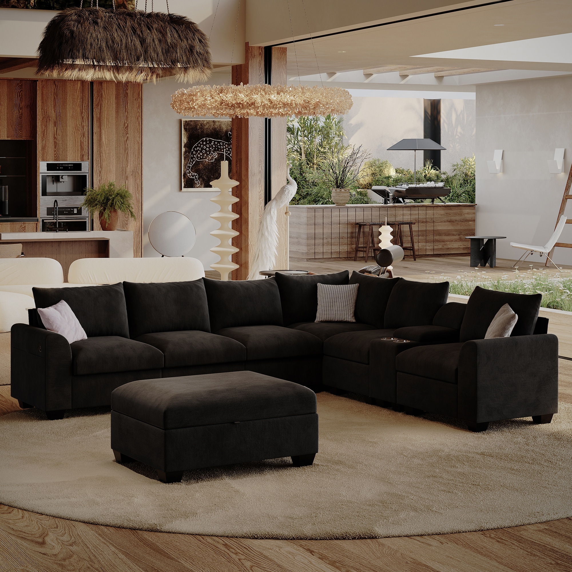 Modular Sectional Sofa U Shaped Modular Couch with Reversible Chaise Modular Sofa Sectional Couch, 6- Seat Convertible Sofa