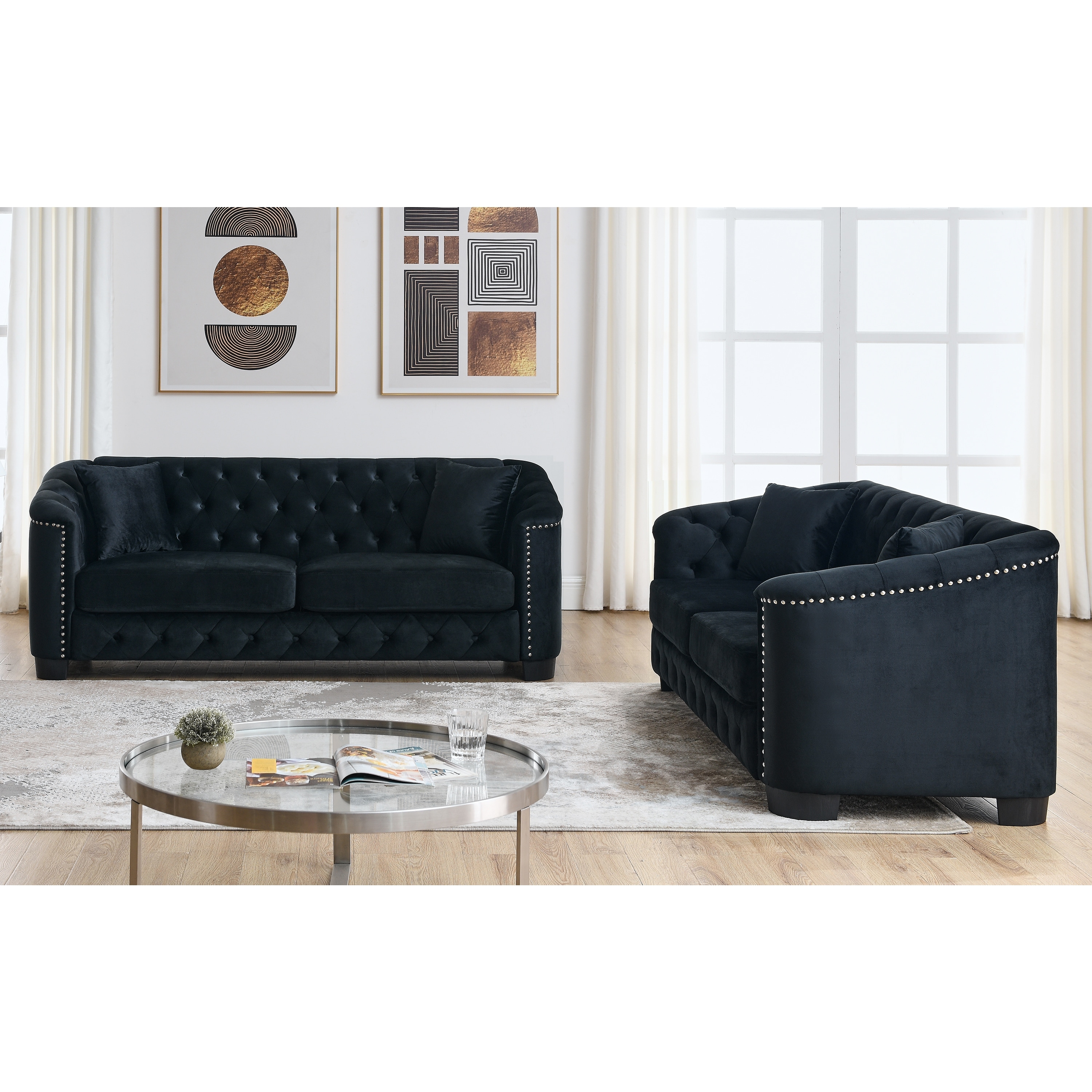 3 Seat Modern Velvet Sofa, Oversize Sofa with Waist Pillows and Throw Pillows for Living Room or Apartment