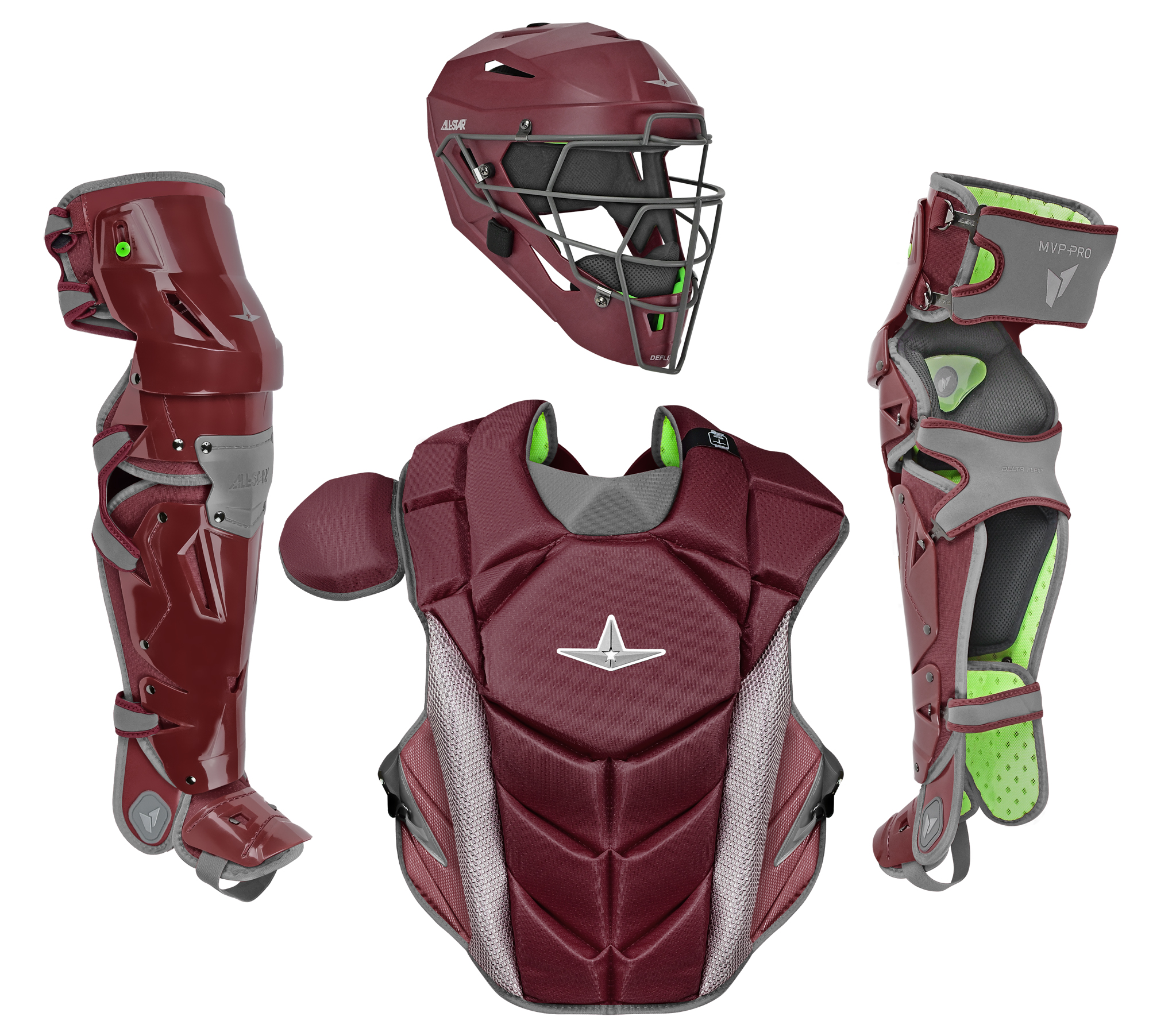All Star MVP-Pro NOCSAE Certified Intermediate Baseball Catcher's Set Maroon/Graphite