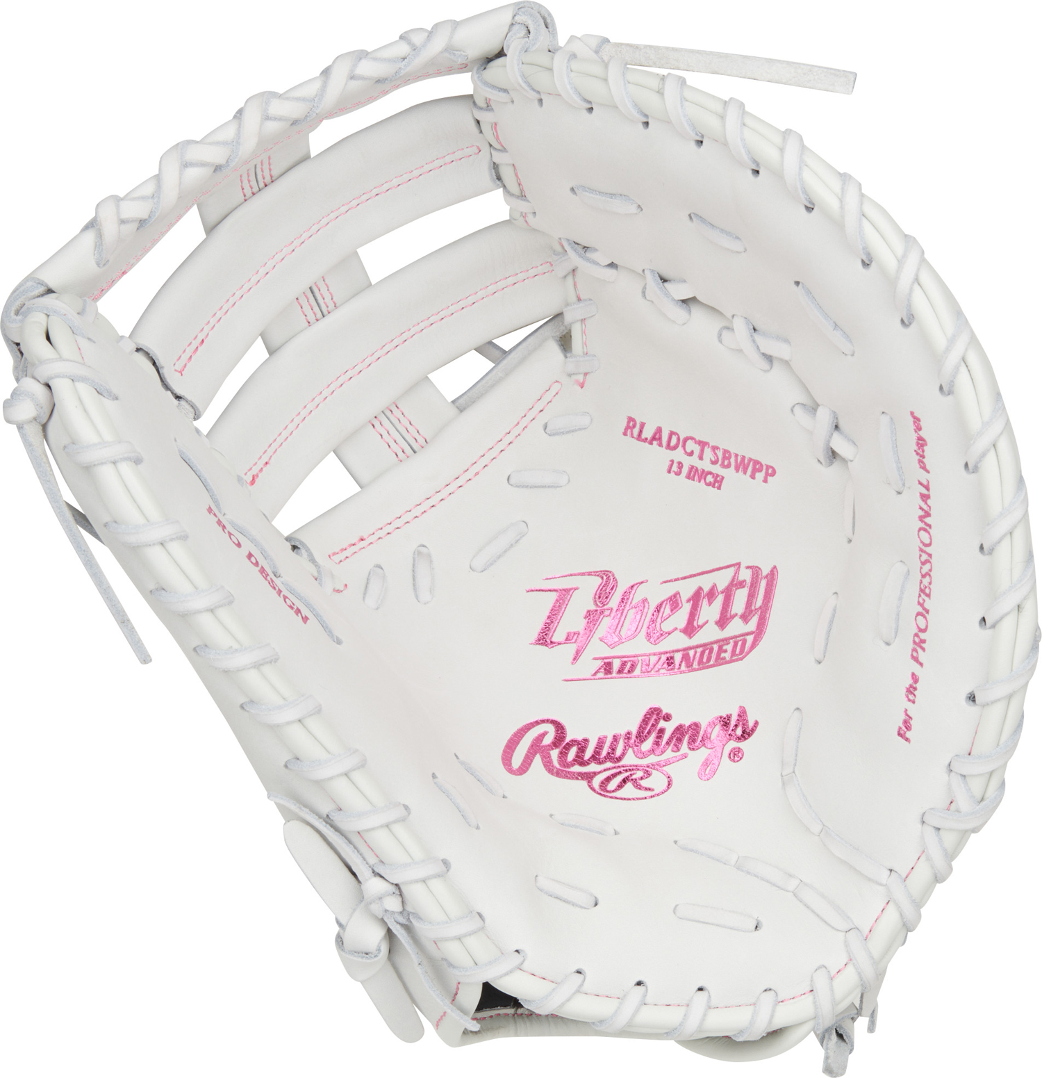 Rawlings Liberty Advanced 13" Fastpitch Softball First Base Mitt - Left Hand Throw White/Pink