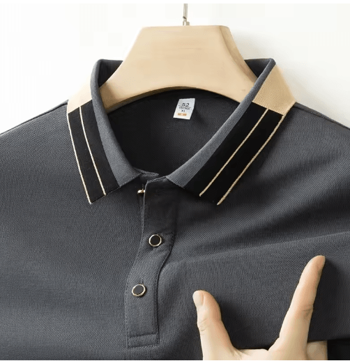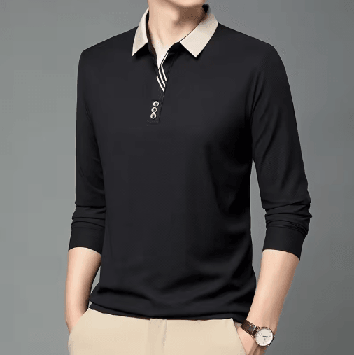 Mens Long Sleeve Polo Shirt Breathable Business Casual Solid Color Top khaki 4xl