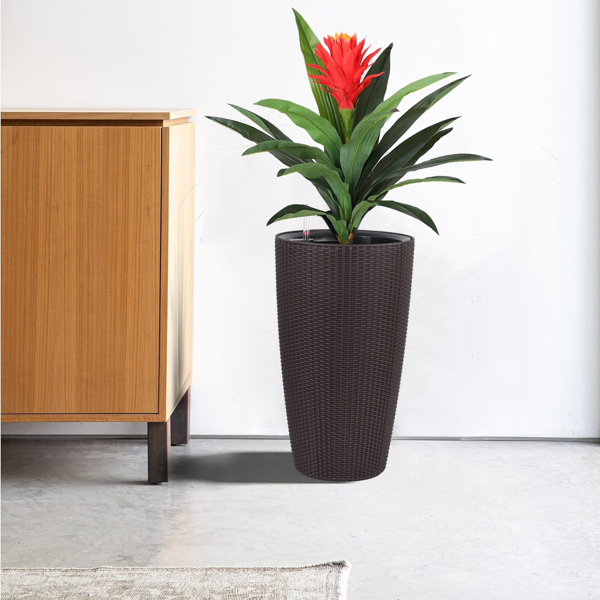 Set of 2 Faux Rattan Tall Planters Outdoor Indoor Large Planters with Water Level Monitor Inner Bucket, Flower Plant Pots