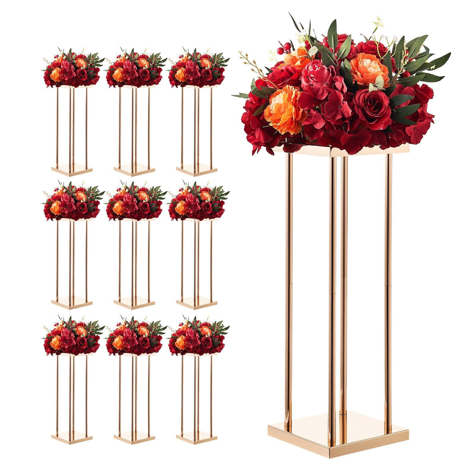 UIMOSO Wedding Flower Stand, 10PCS Column Flower Stand, Floral Stands with Metal Laminate, Cylindrical Cubic Floral Display Rack