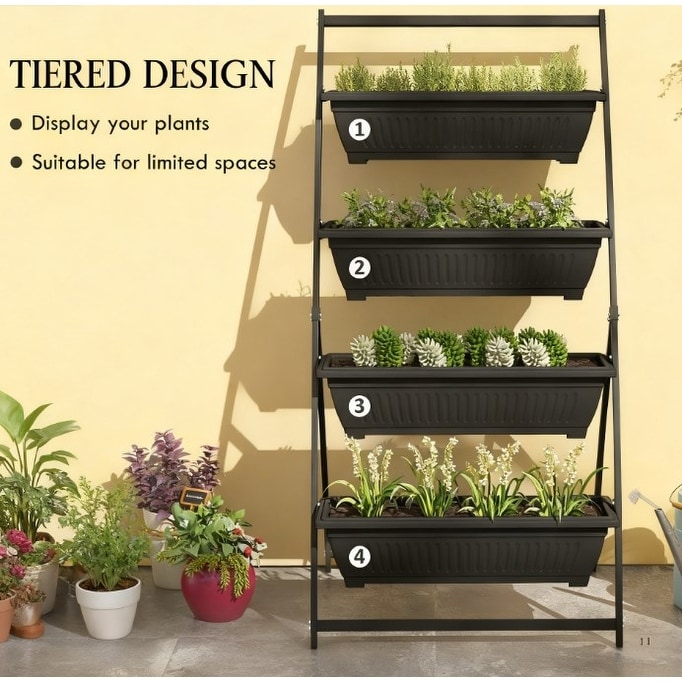 Outdoor Plant Stand Grow Container for Vegetable & Flowers,4-Tier Vertical Raised Garden Planter with 4 Boxes