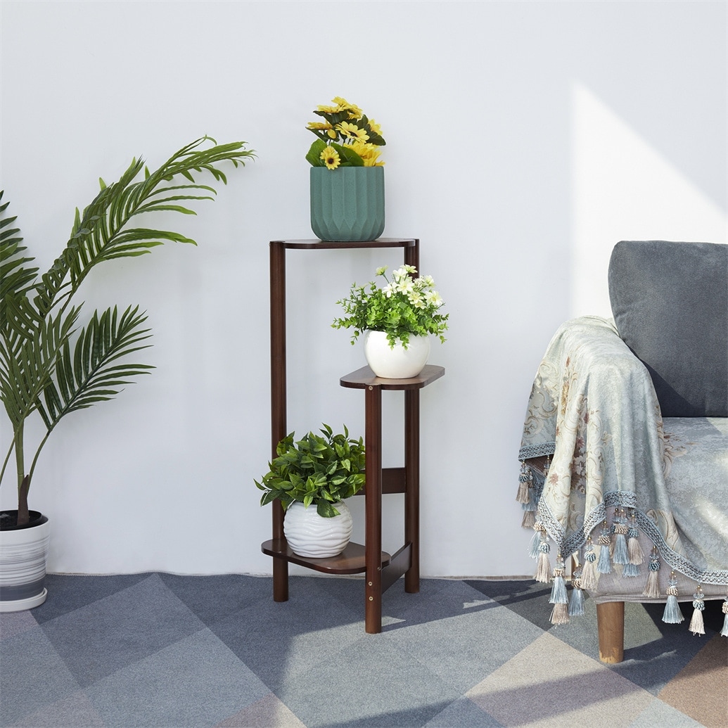 Bamboo Plant Stand Indoor Outdoor 3 Tier Tall Corner Flower Rack Holder Display