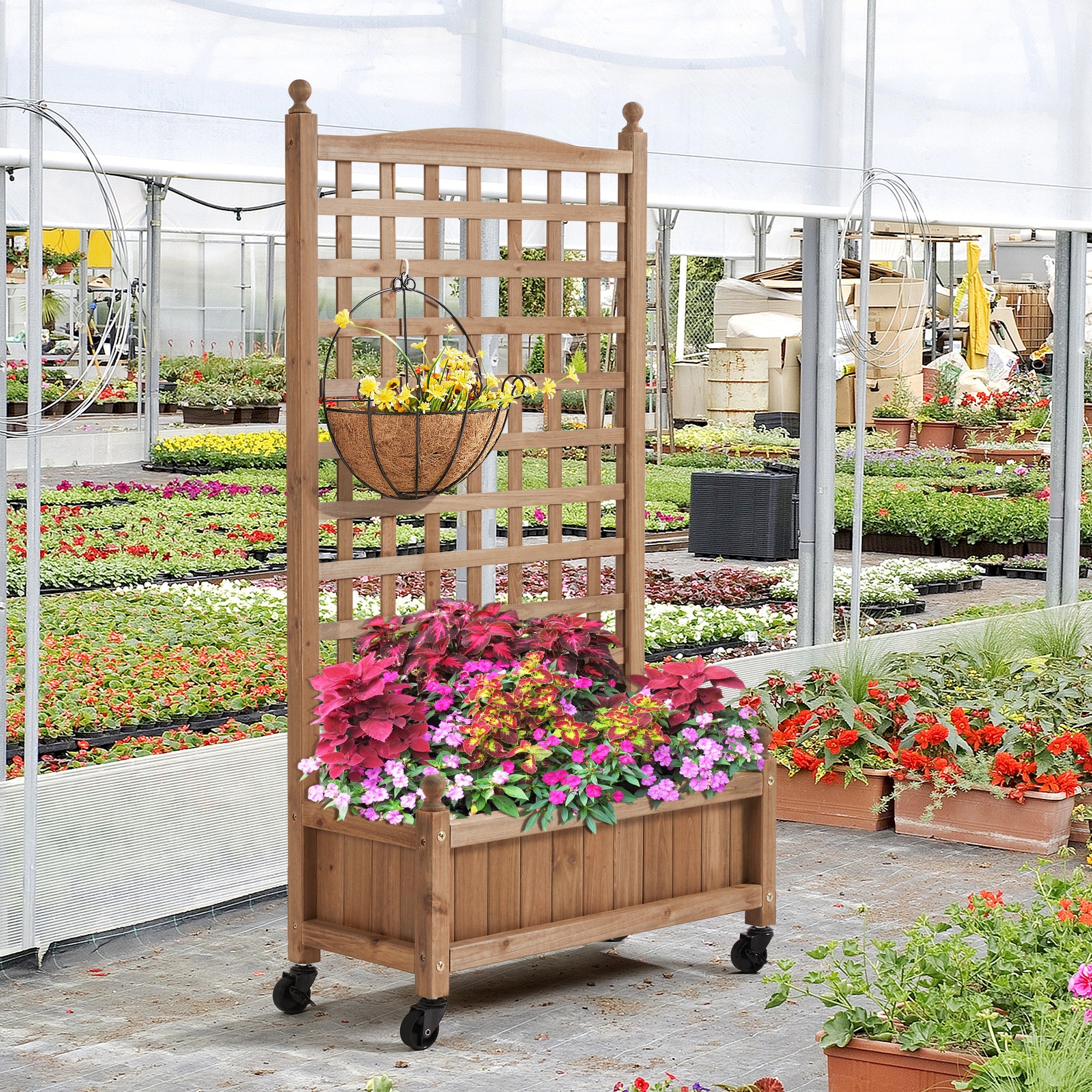 Wooden Raised Garden Bed with Trellis Fir Wood Planter Box for Vegetables Flowers Herbs Indoor Outdoor - 28" x 13" x 60"