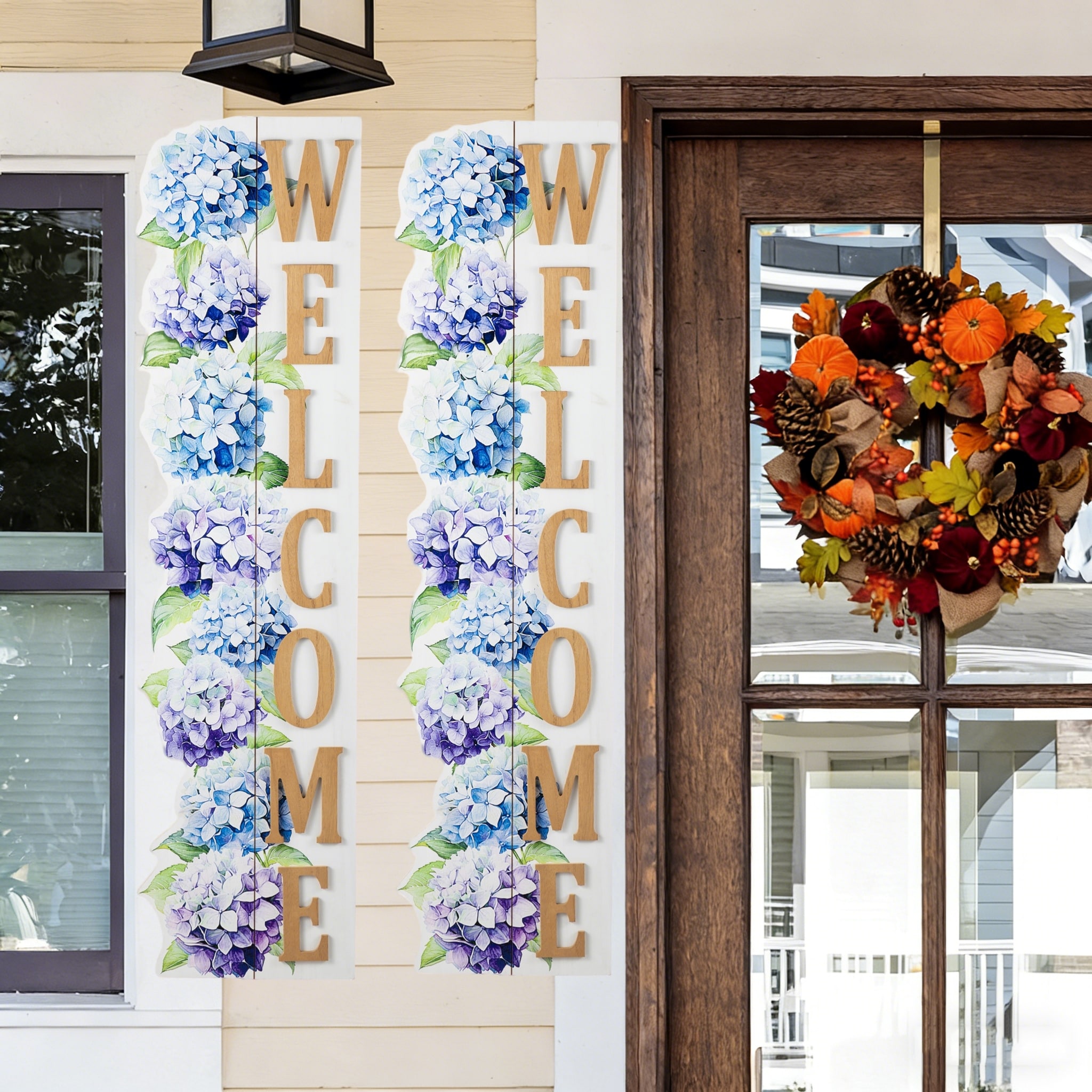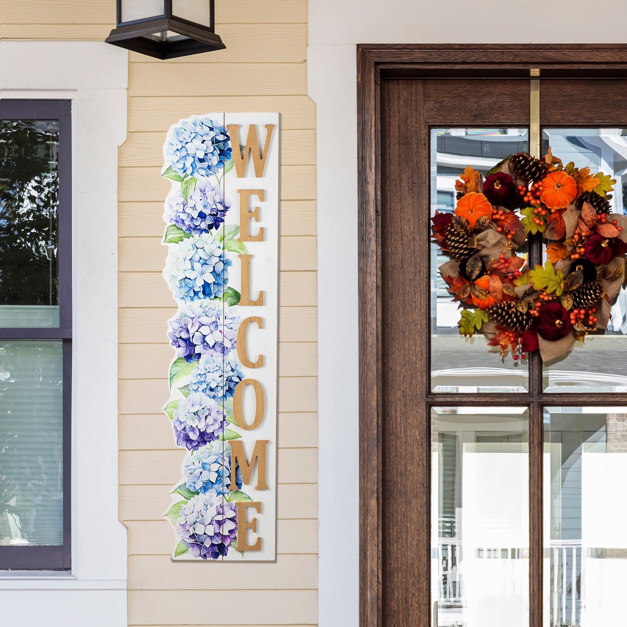 Glitzhome 42"H Solid Wood WELCOME Porch Sign with Bee Outdoor Decor