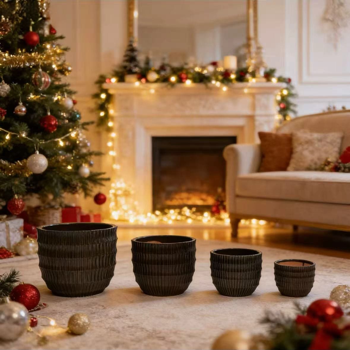 4-Piece Ceramic Flowerpot Set, Modern Planters