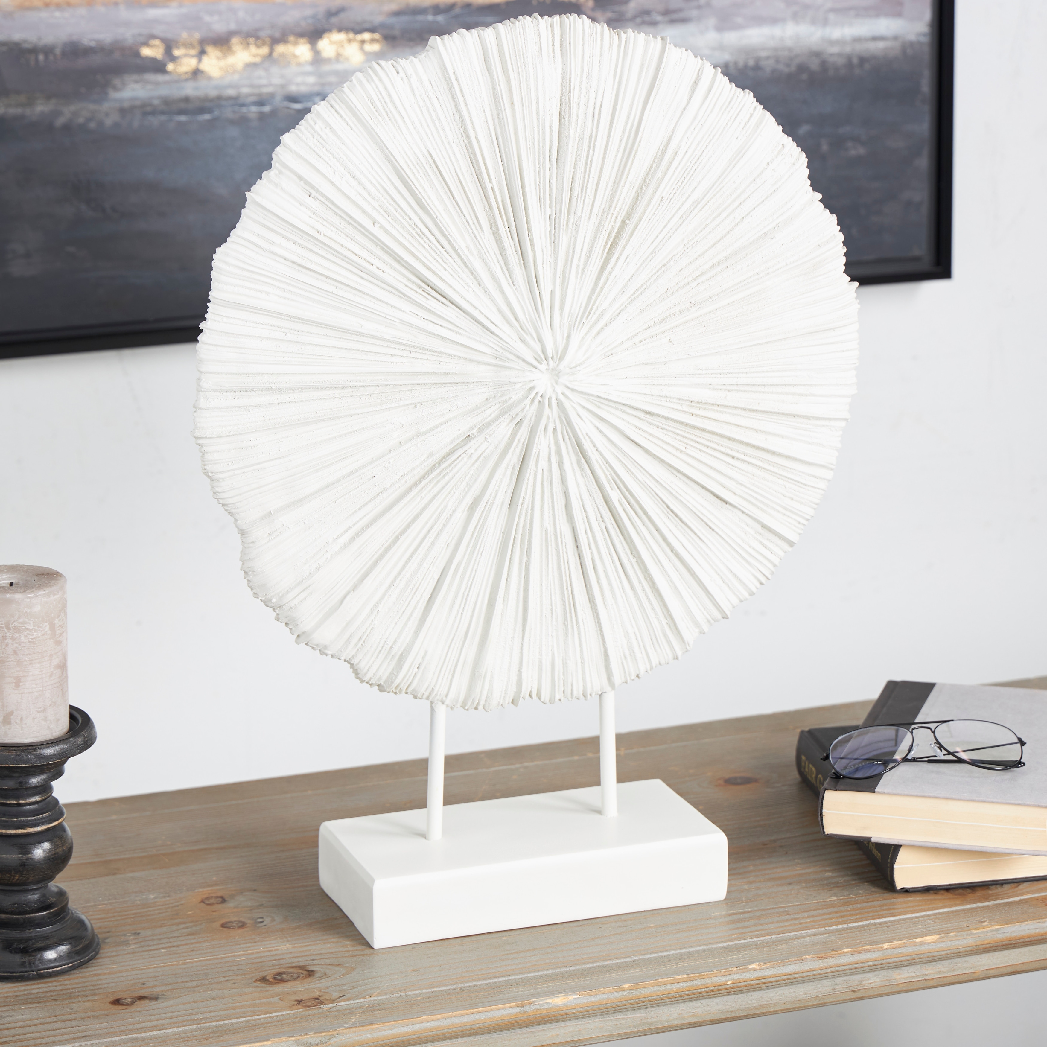 Cream Resin Textured Round Coral Decorative Sculpture with Elevated Stand
