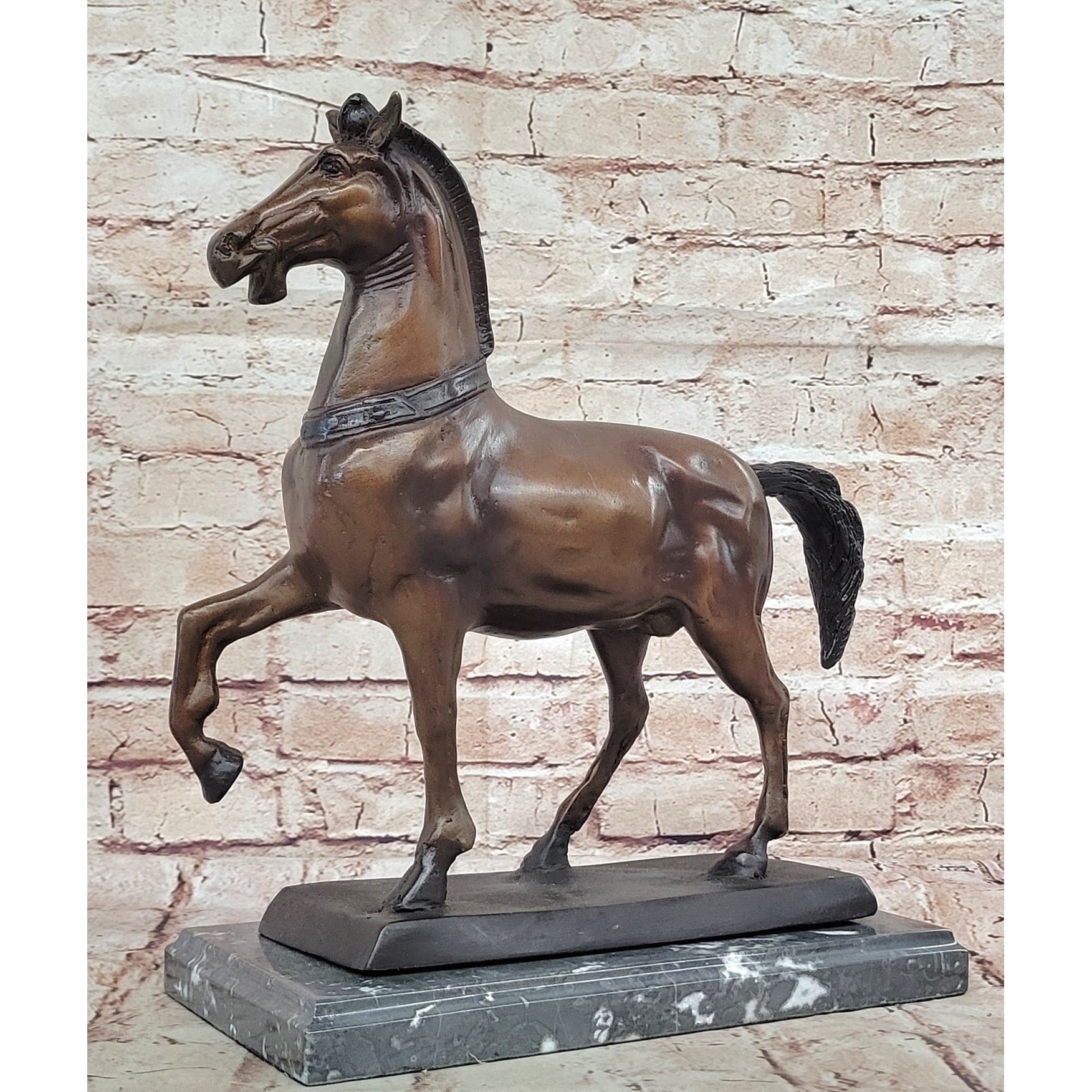Bronze Horse Sculpture – Elegant Stallion Statue On Marble Base