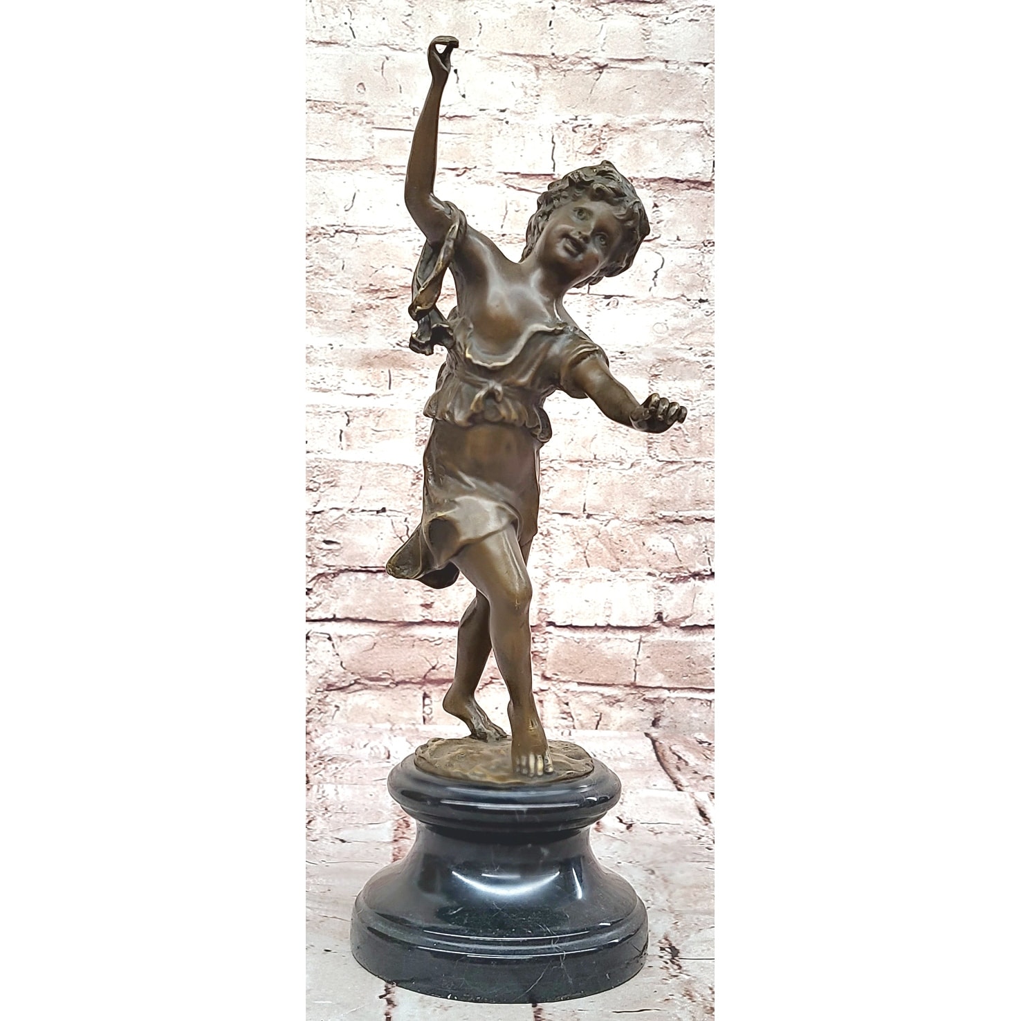 Bronze Dancing Girl Sculpture – Joyful Child Figurine On Marble Base