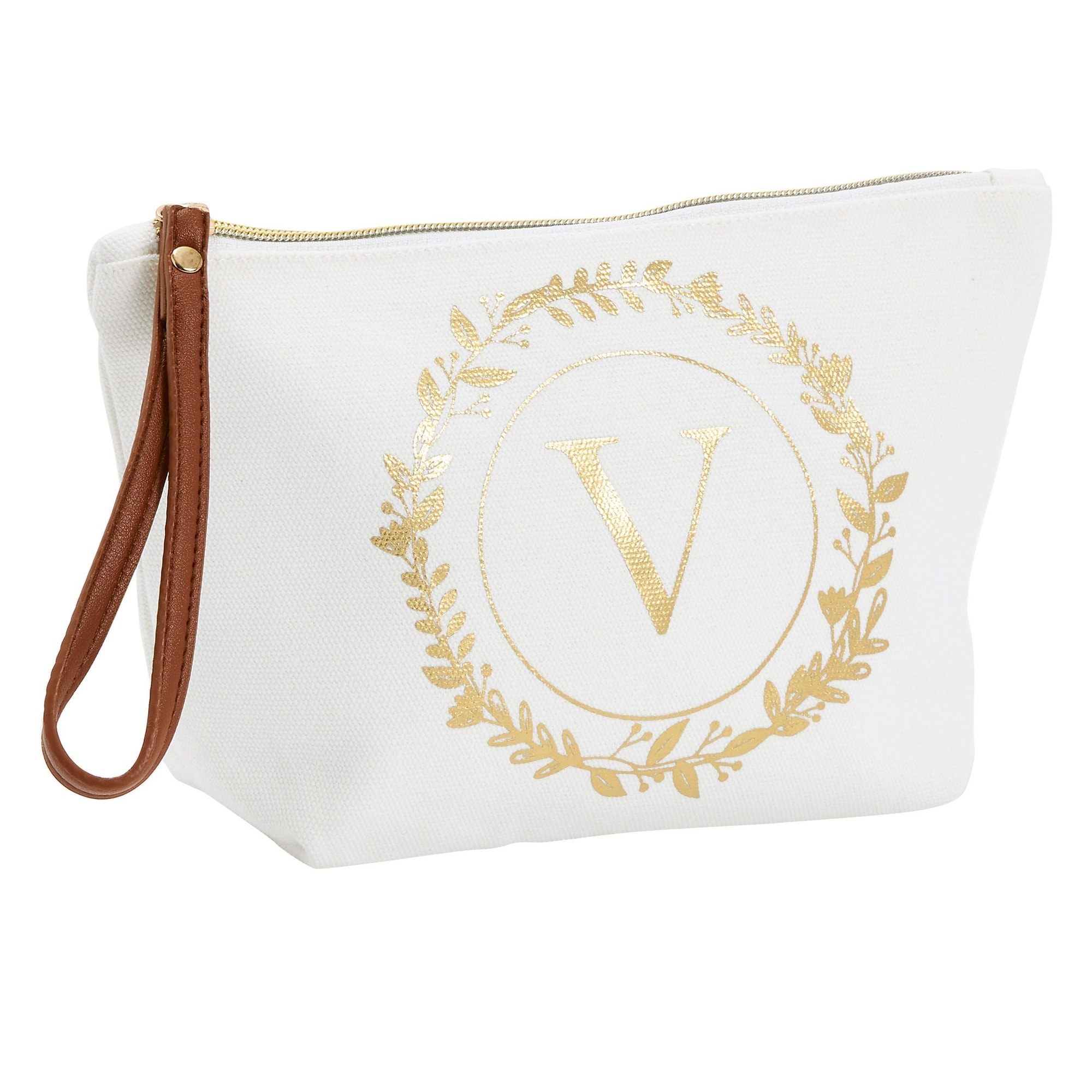 Glamlily Gold Letter V Monogram Personalized Makeup Bag, Cosmetic Pouch, 10 x 3 x 6 In