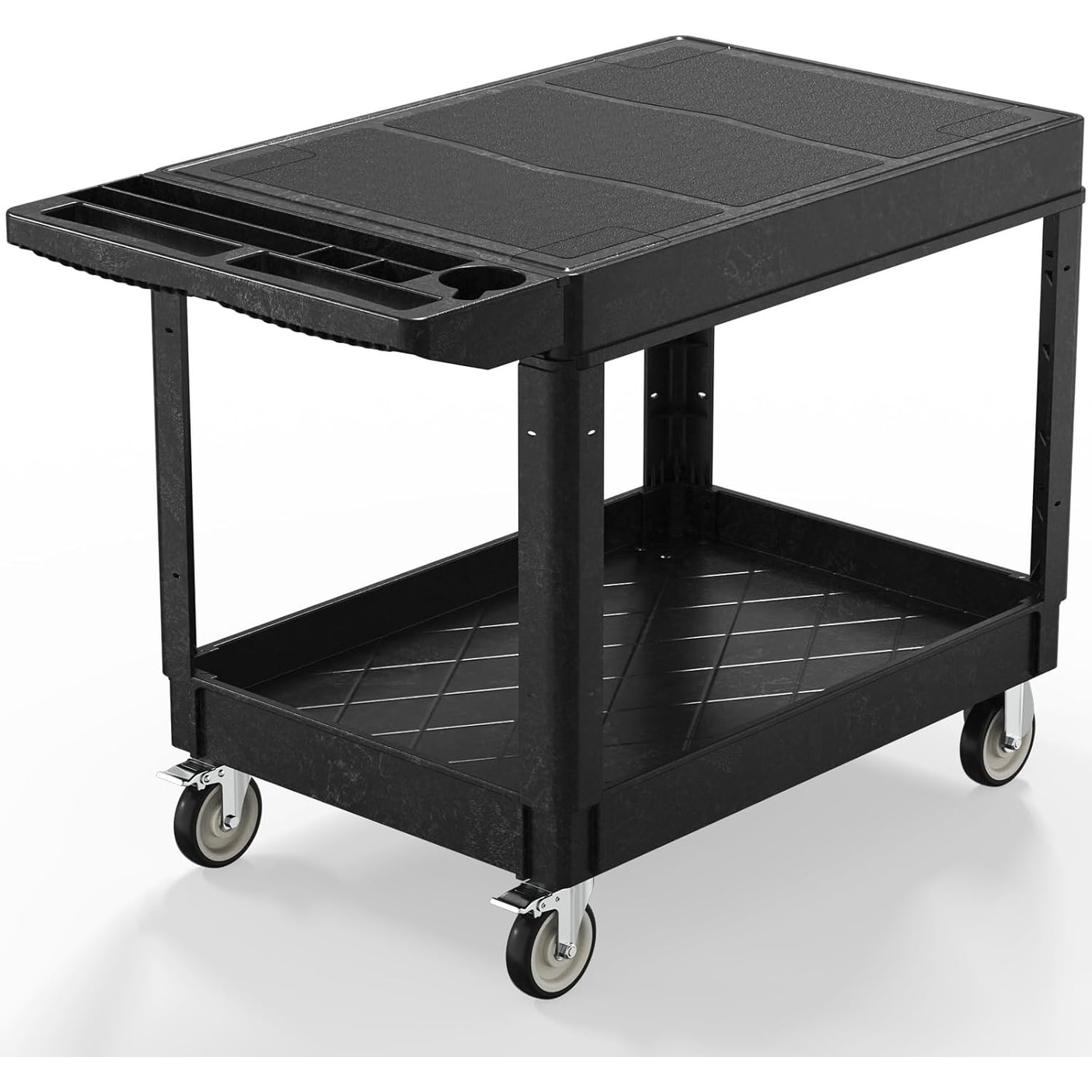 2 Shelf Utility Service Cart 550LBS Plastic Rolling Tool Carts