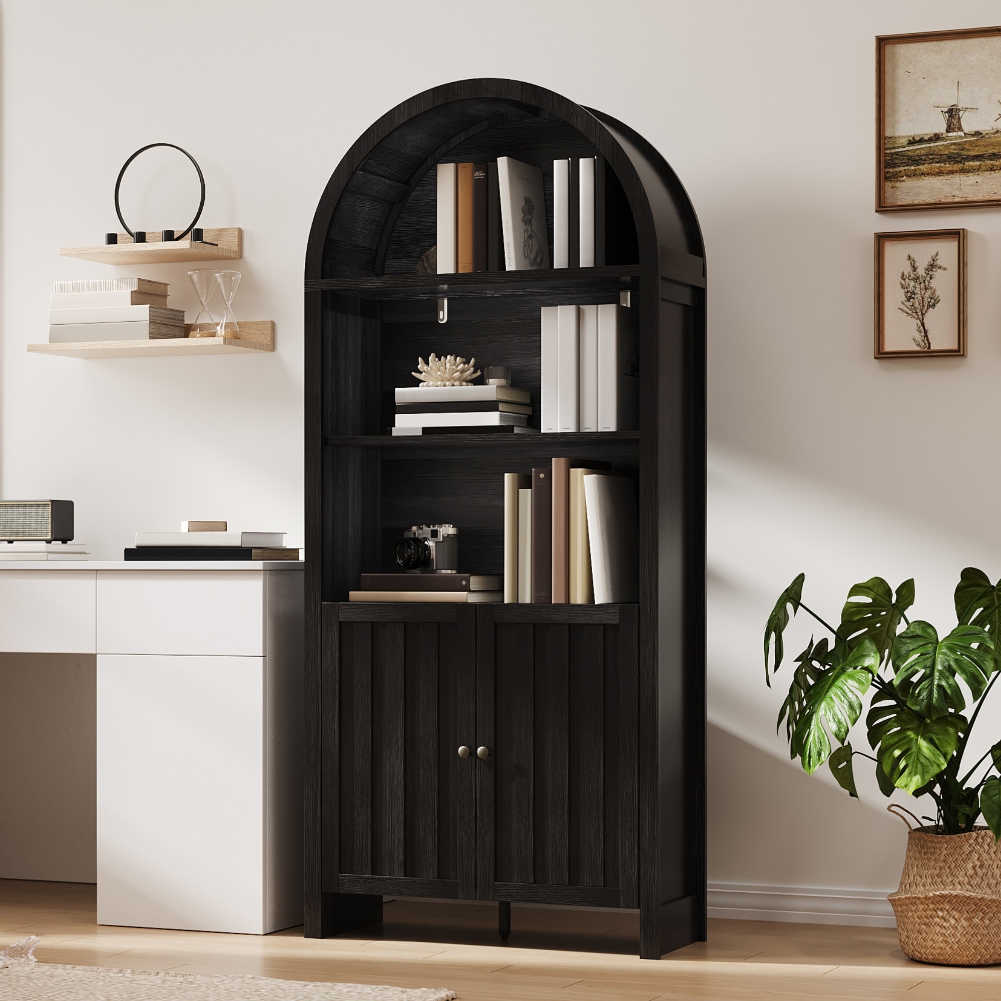 71" Tall Farmhouse Kitchen Pantry with Arched Top and Storage Cabinet