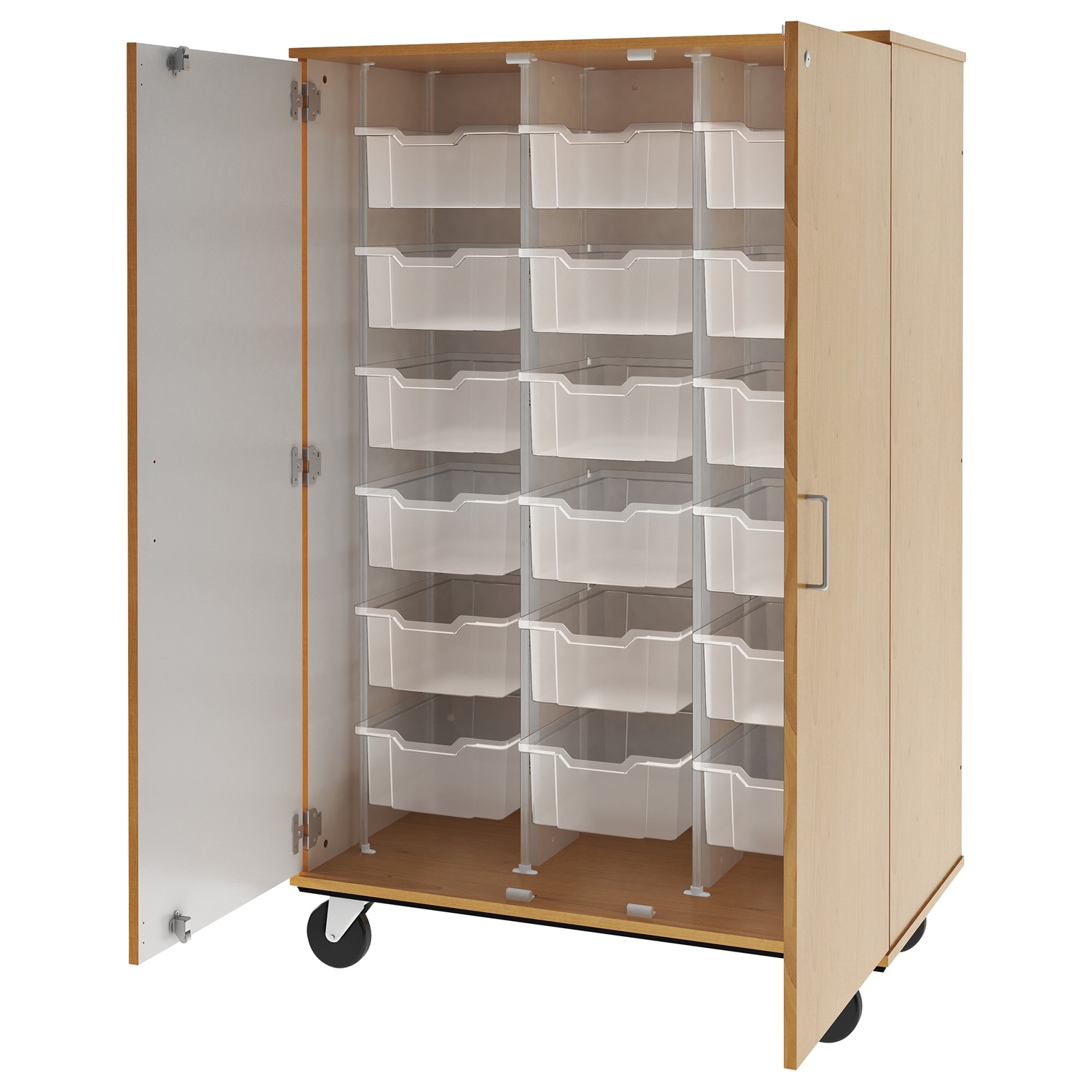 Mobile Storage Cubby Organizer - 12 Section Rolling Cabinet with Doors - 36" Tall