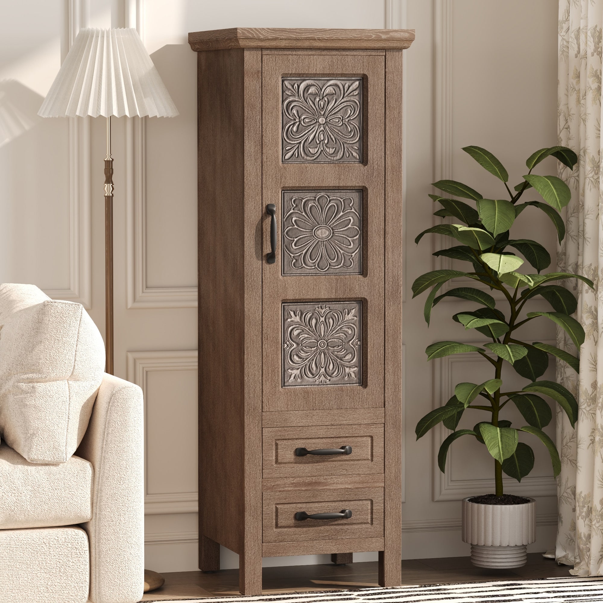 POLESITTER Tall Storage Cabinet with 2 Drawers,Accent Cabinet with Removable Shelves