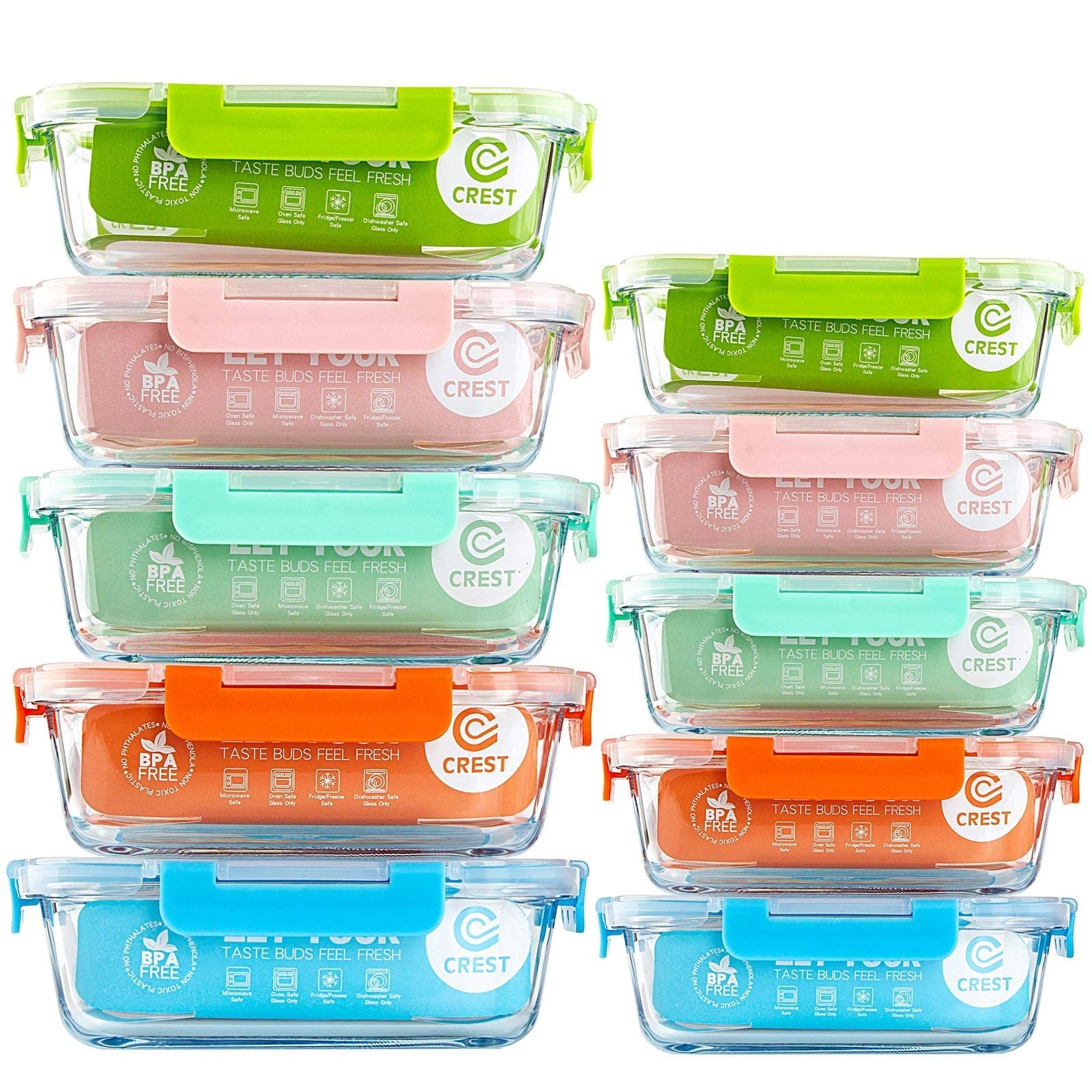 [10-Pack Glass Food Storage Containers (A Set of Five Colors), Meal Prep Containers with Lids for Kitchen, Home Use