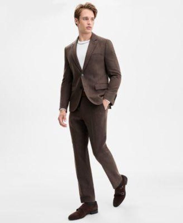 Hugo By Modern Fit Herringbone Overcoat Suit Separates - Brown - Boss Jackets