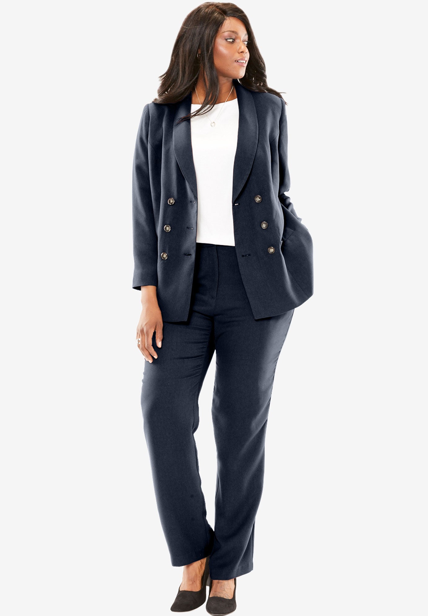 Plus Size Women's 2-Piece Double-Breasted Pantsuit by Jessica London in Navy (Size 28 W) Set