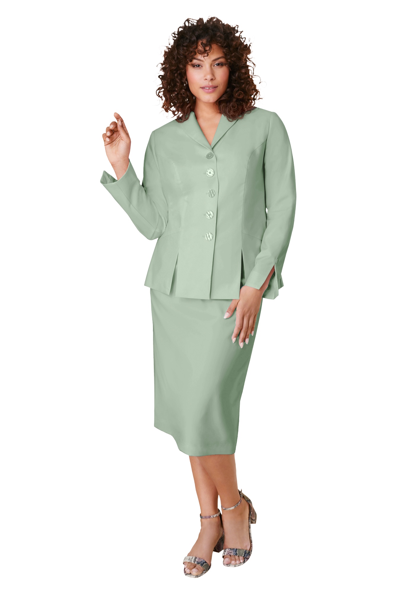 Plus Size Women's Plus Size Long Sleeve Shawl-Collar Jacket & Sheath Skirt Set - 2-Piece Suit by Roaman's in Ice Jade (Size 34 W) Skirt Suit
