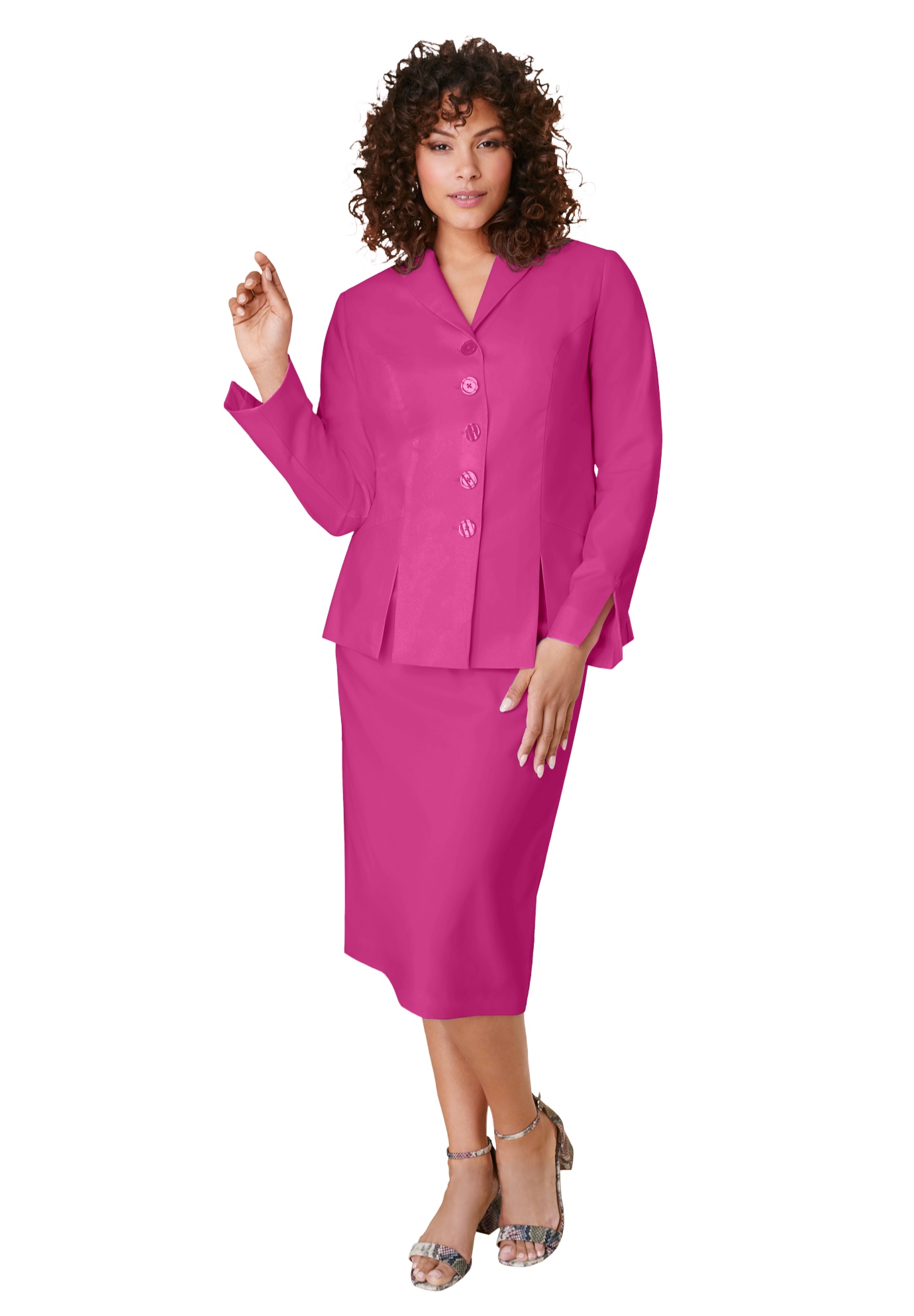 Plus Size Women's Plus Size Long Sleeve Shawl-Collar Jacket & Sheath Skirt Set - 2-Piece Suit by Roaman's in Paradise Pink (Size 18 W) Skirt Suit