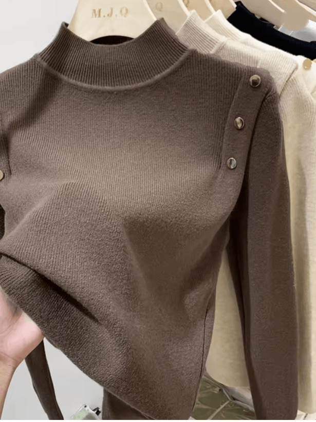 CozyCharm Womens Knitted Turtleneck Sweater With Button Detail brown