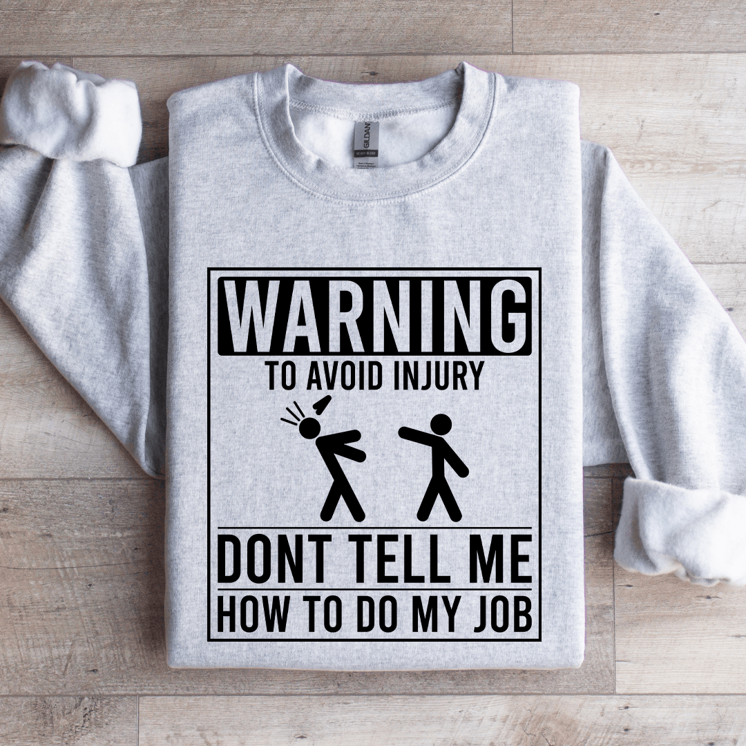 Warning To Avoid Injury Don't Tell Me Sweatshirt XL Ash
