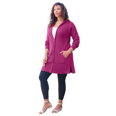 Womens Solid Color Thick Fleece Zip Up Hoodie With Pockets 2xl wine
