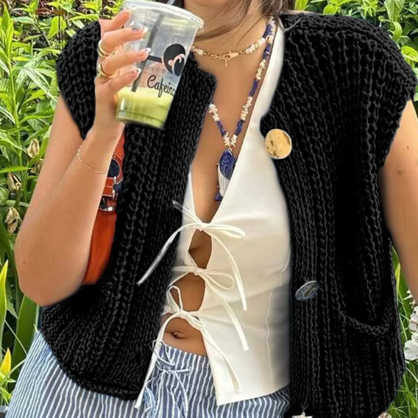 Women Sweater Vests Fashion Sweater Big Button Clothing black small(4)