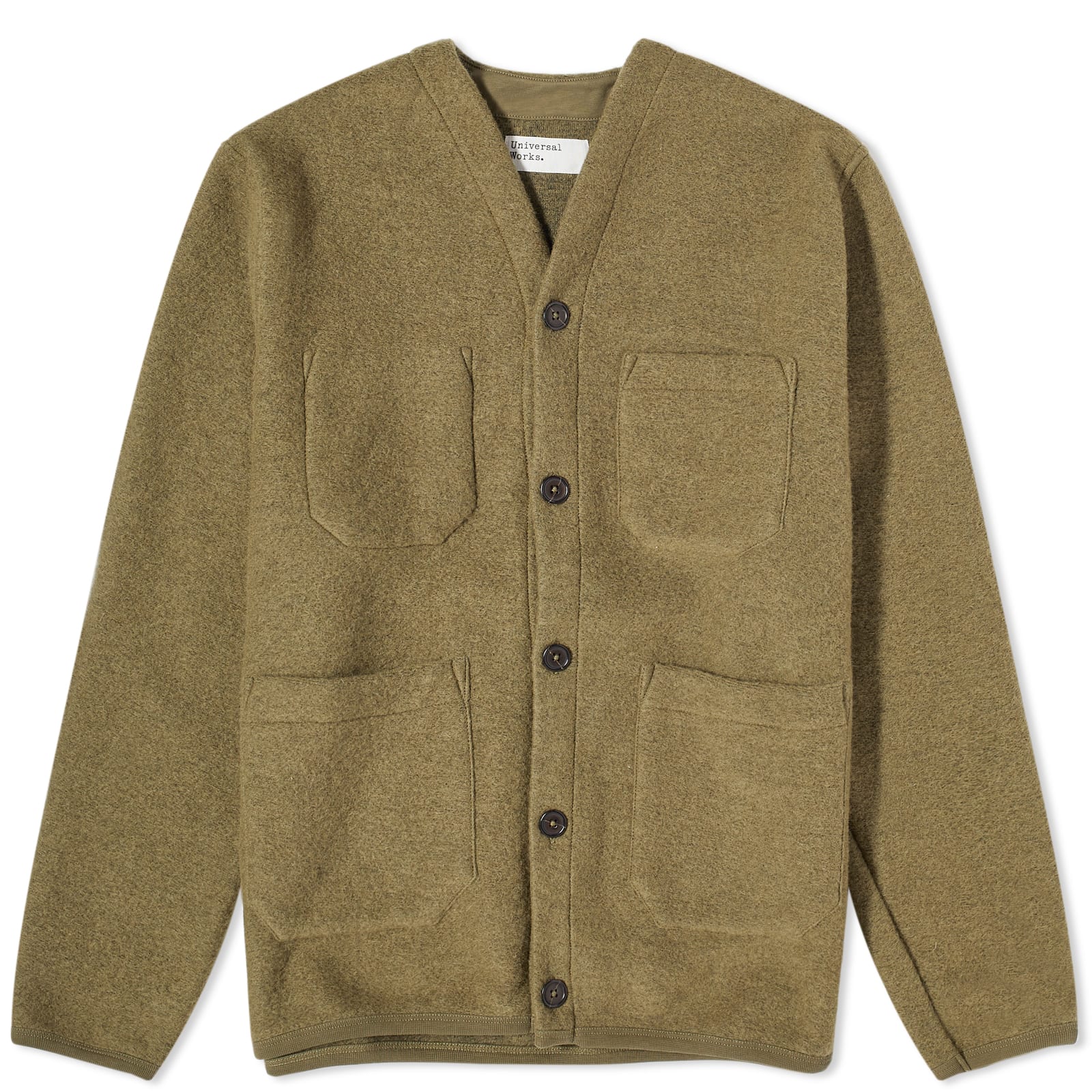 Universal Works Men's Wool Fleece Cardigan in Lovat