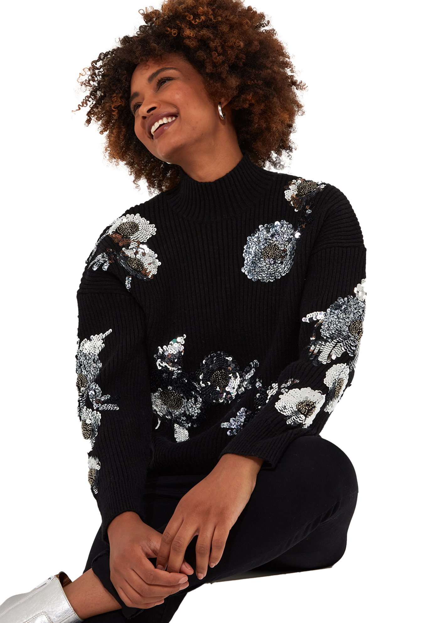 Plus Size Women's Mockneck Shimmer Sweater by Joe Browns in Silver Sequin Floral (Size 2X)